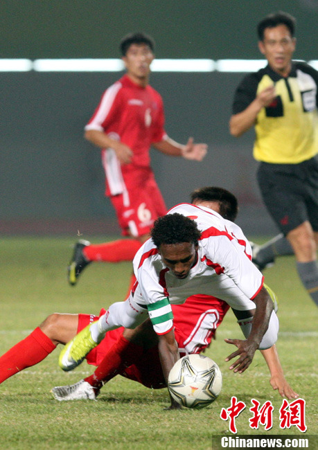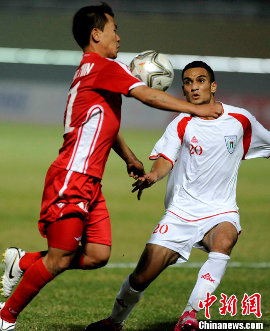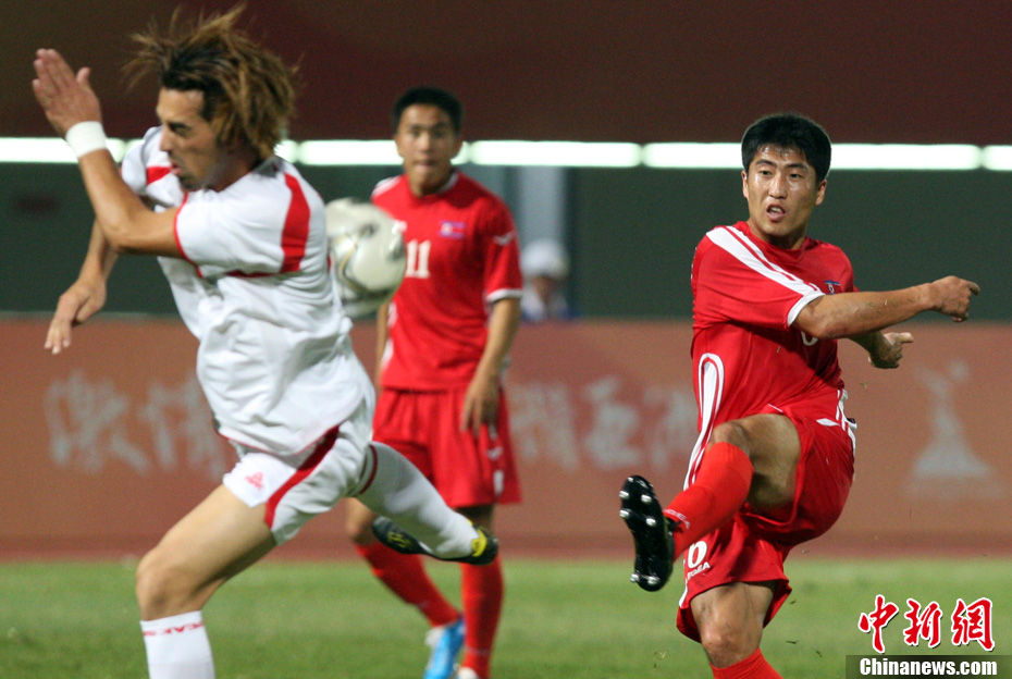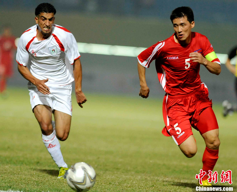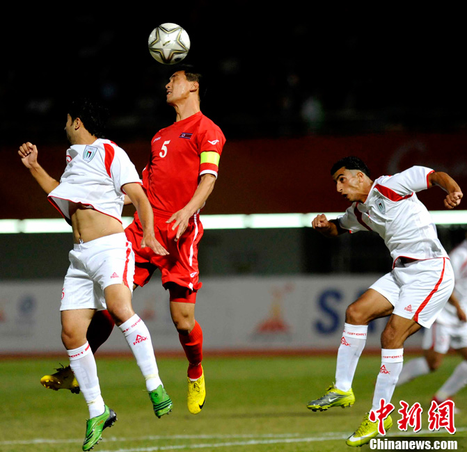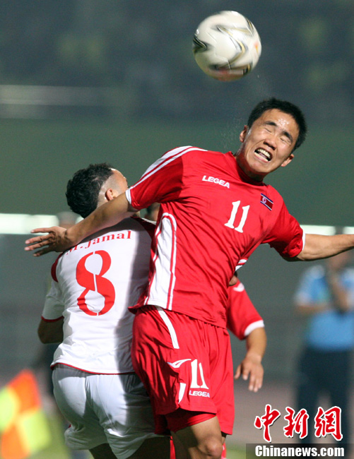 11月10日,廣州亞運(yùn)會(huì)男子足球小組賽C組第24場(chǎng)朝鮮與巴勒斯坦的比賽在番禹英東體育場(chǎng)舉行。最終,朝鮮以3比0戰(zhàn)勝巴勒斯坦。中新社記者 湯彥俊 攝