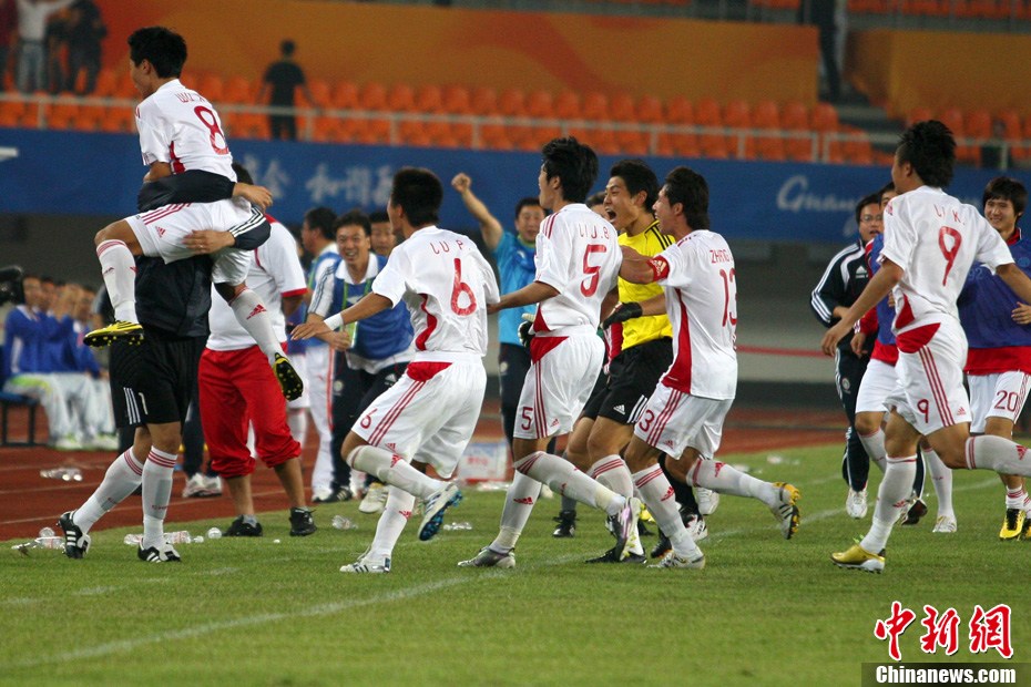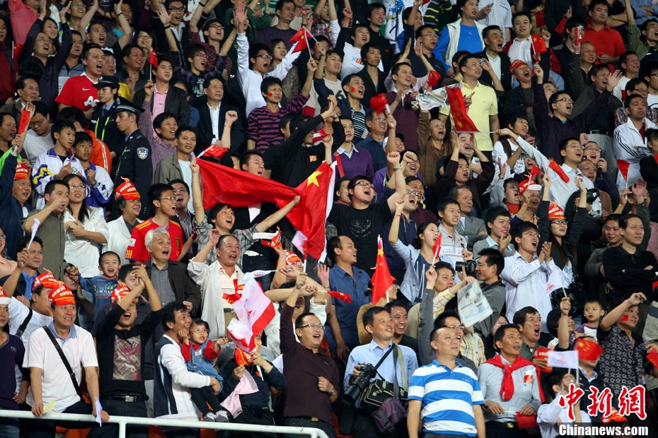 11月10日晚,廣州亞運(yùn)會男子足球小組賽A組第19場中國與吉爾吉斯斯坦的比賽在廣州天河體育場進(jìn)行,最終中國隊2:1戰(zhàn)勝吉爾吉斯斯坦隊。中新社記者 富田 攝