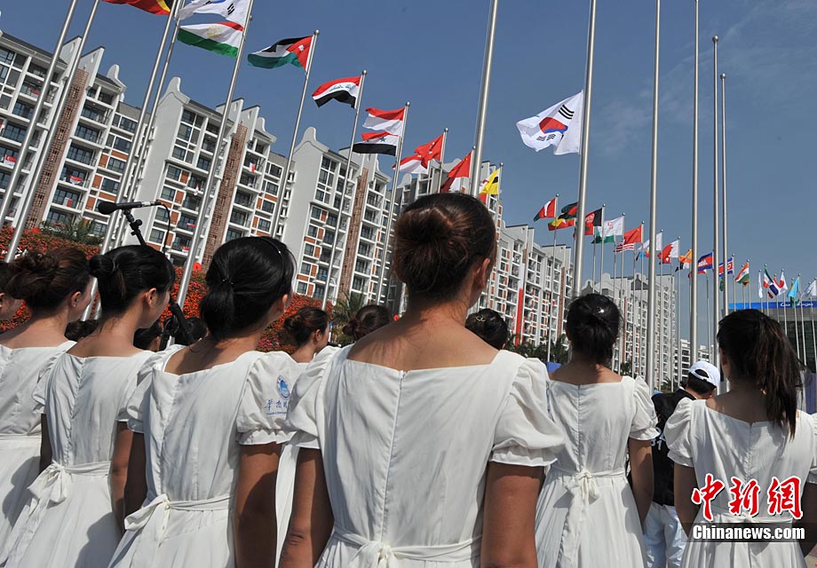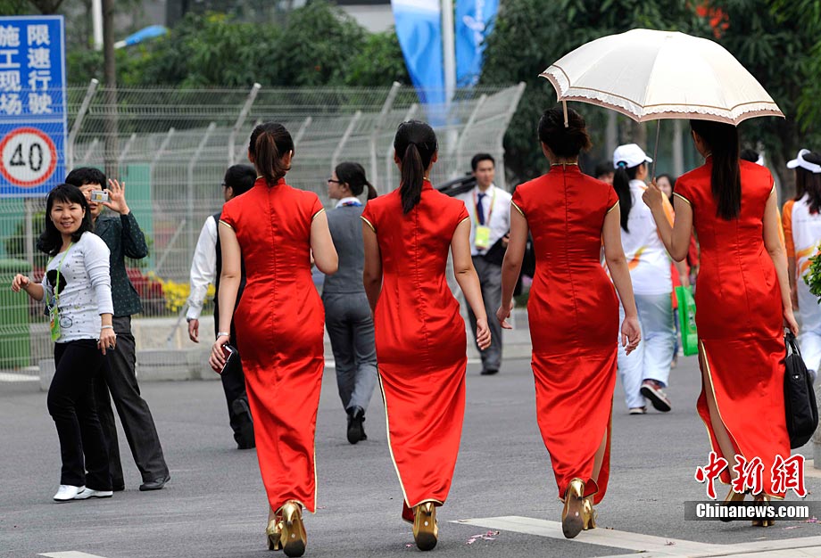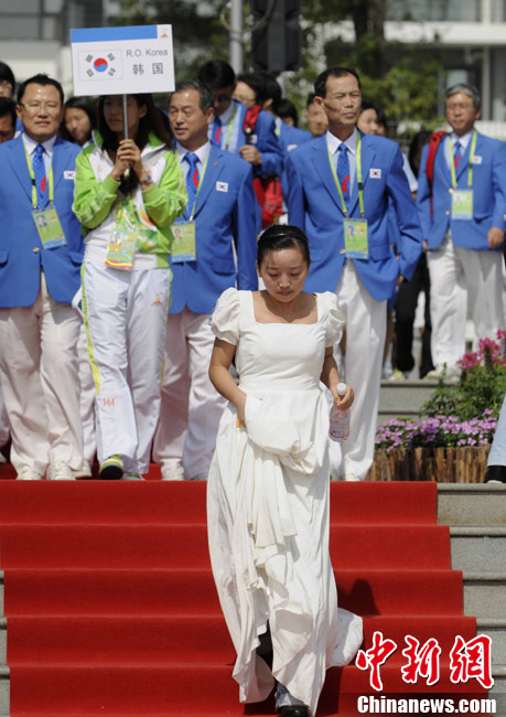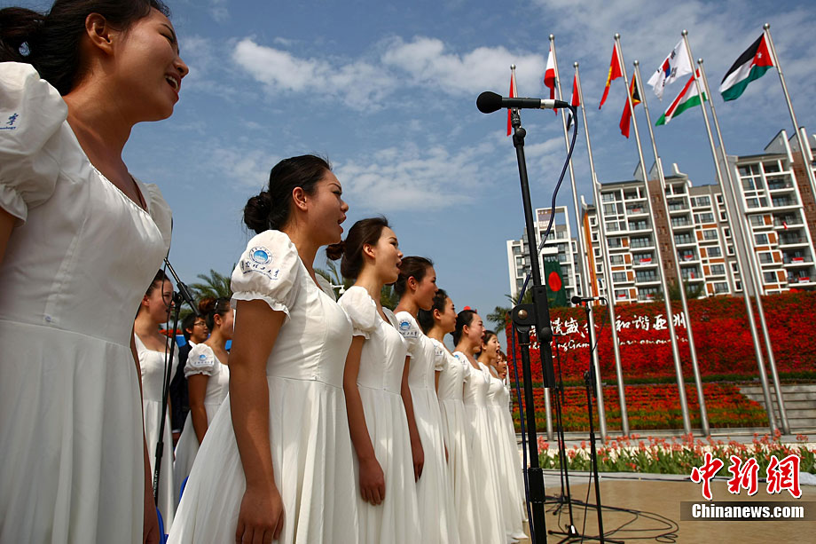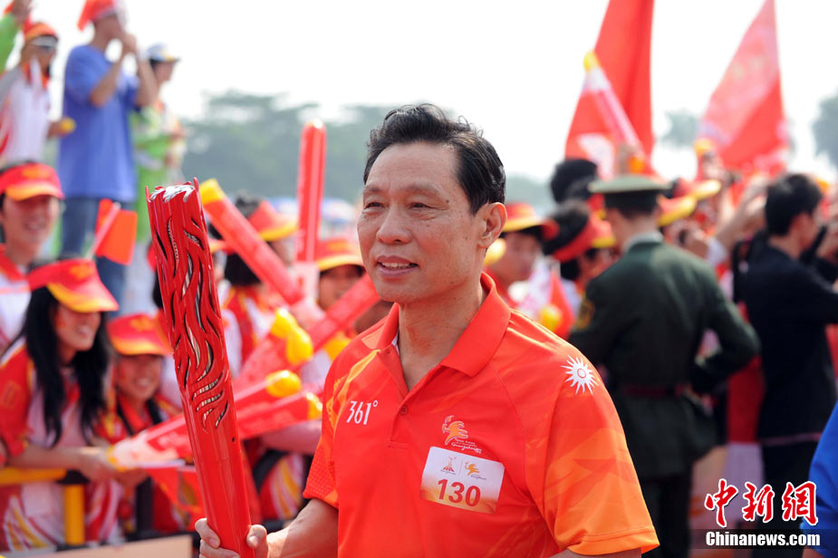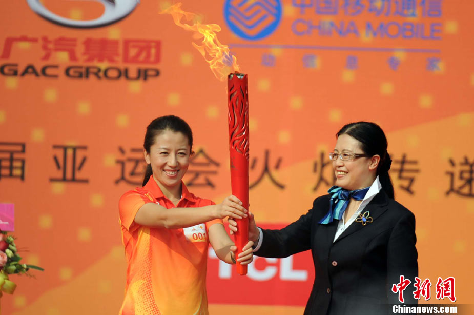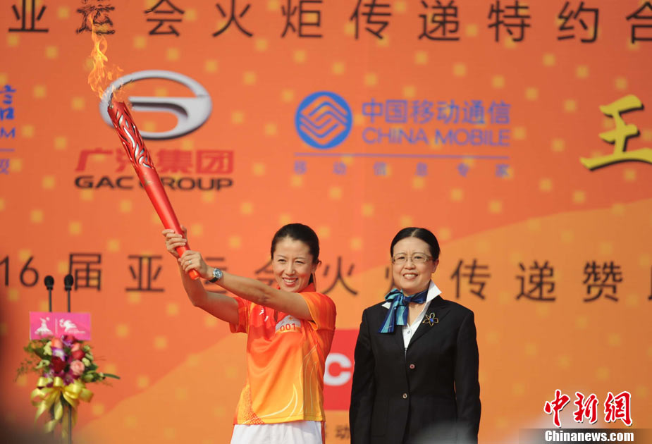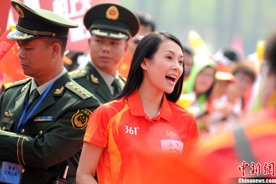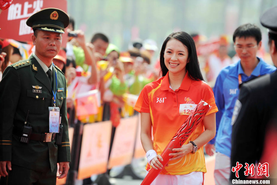 章子怡在廣州大學(xué)城傳遞亞運(yùn)圣火