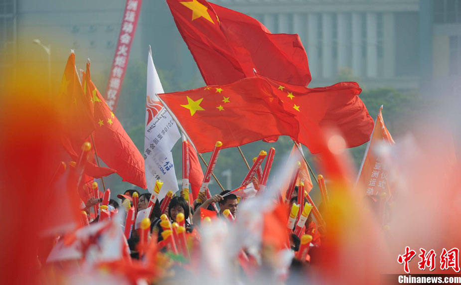 11月11日,著名影星章子怡在廣州大學(xué)城參加亞運(yùn)火炬?zhèn)鬟f。中新社記者 陳文 攝