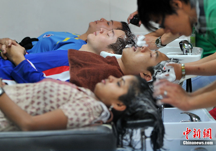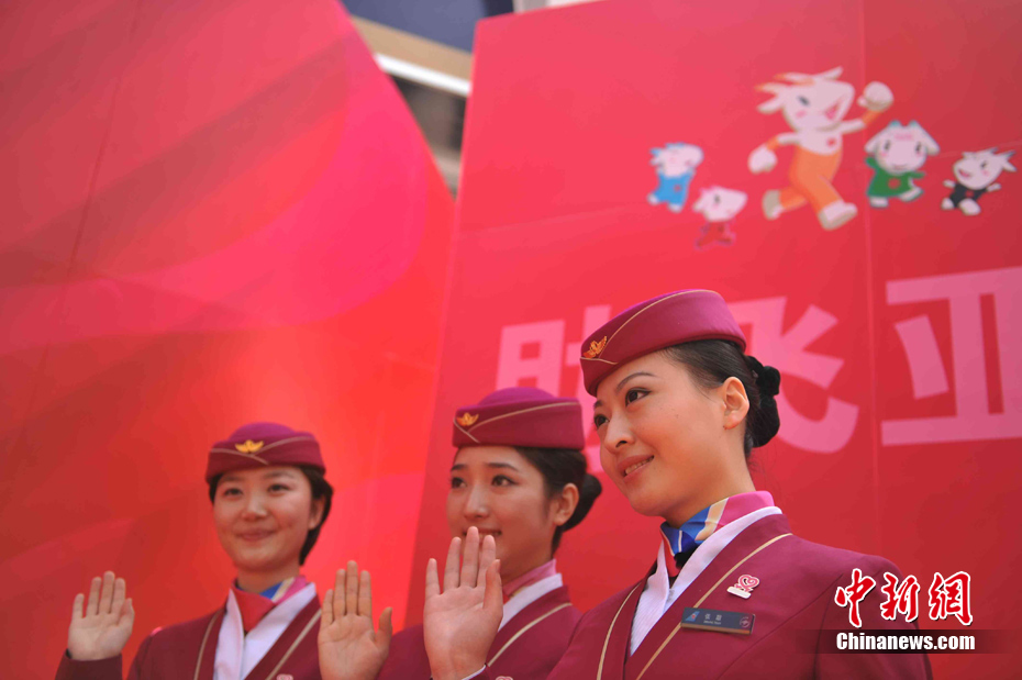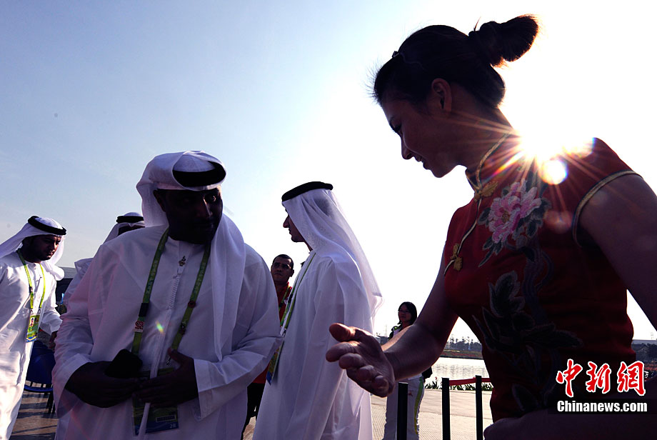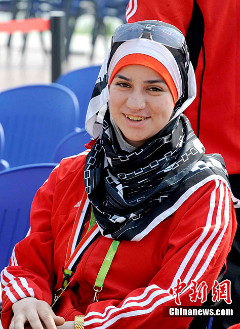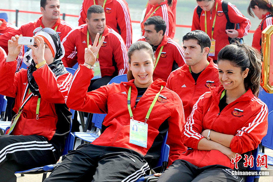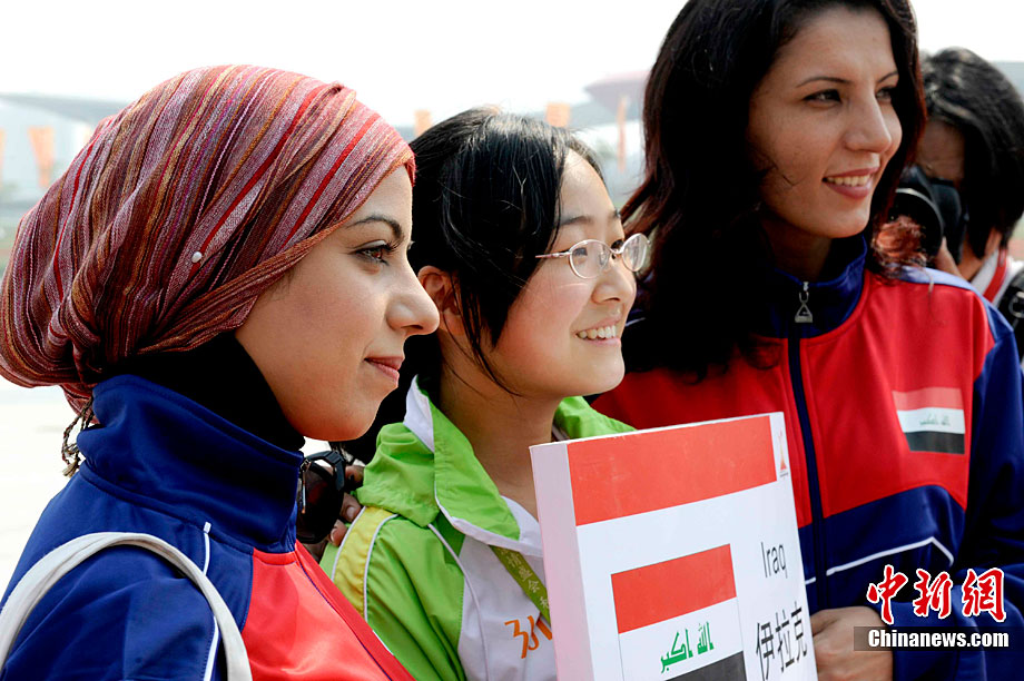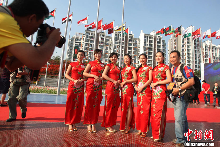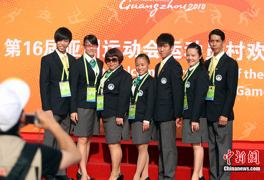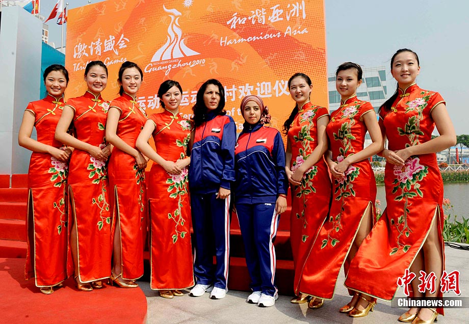 11月11日,靚麗的外國女運動員亮相廣州亞運村,當(dāng)天,敘利亞、伊拉克、尼泊爾代表團在亞運村舉行升旗儀式。中新社記者 王東明 攝