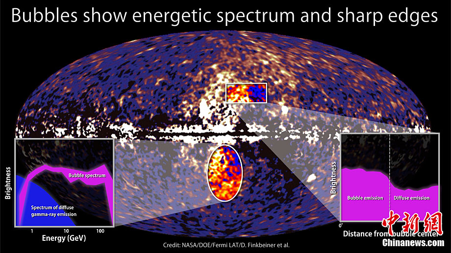 研究人員稱,宇宙氣泡結(jié)構(gòu)表明數(shù)百萬年前存在著爆炸式的恒星誕生,或者它們形成于銀河系中心一個超大質(zhì)量黑洞噴射大量氣體和灰塵之中。美國哈佛-史密遜天體物理學研究中心的道格-芬克貝涅(Doug Finkbeiner)是該項研究負責人,他說:“目前最新發(fā)現(xiàn)的銀河系巨大氣泡結(jié)構(gòu)仍存在著謎團,我們并不能完全理解它的特性或者起源!