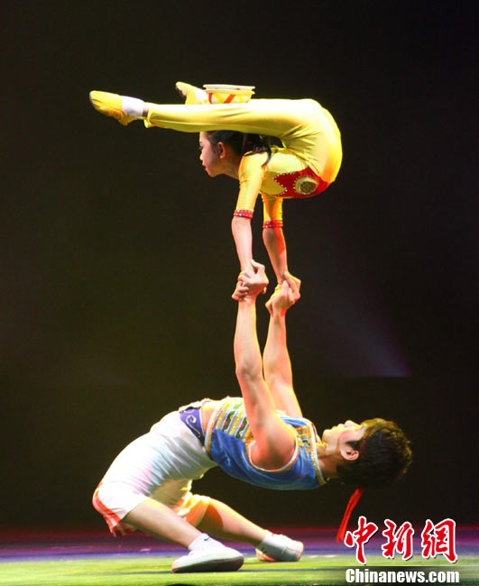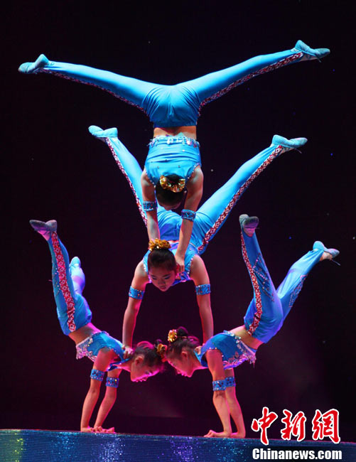 由廣西文化廳,廣西文學藝術(shù)界聯(lián)合會,廣西電視臺聯(lián)合主辦的第一屆廣西雜技(魔術(shù))比賽于11月10至11日在南寧舉行。全區(qū)共有24個雜技節(jié)目,14個魔術(shù)節(jié)目報名參賽。有28個節(jié)目進入決賽,其中雜技類16個、魔術(shù)類12個。 中新社發(fā) 曾德軍 攝