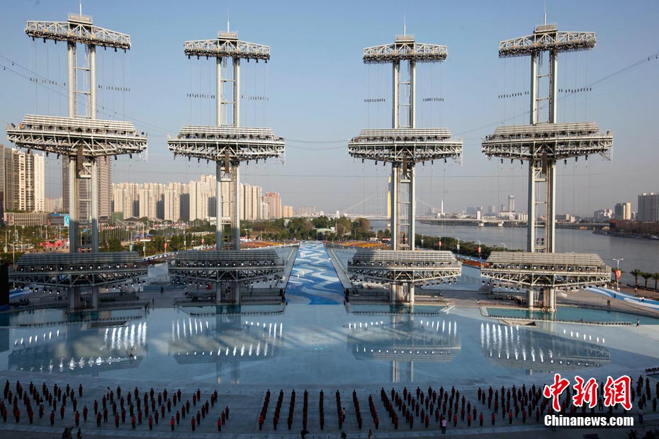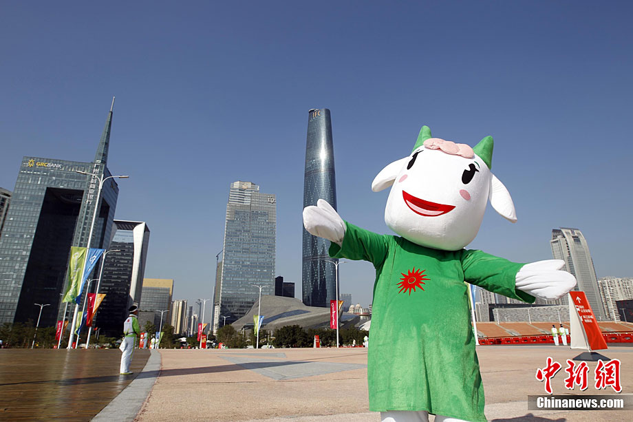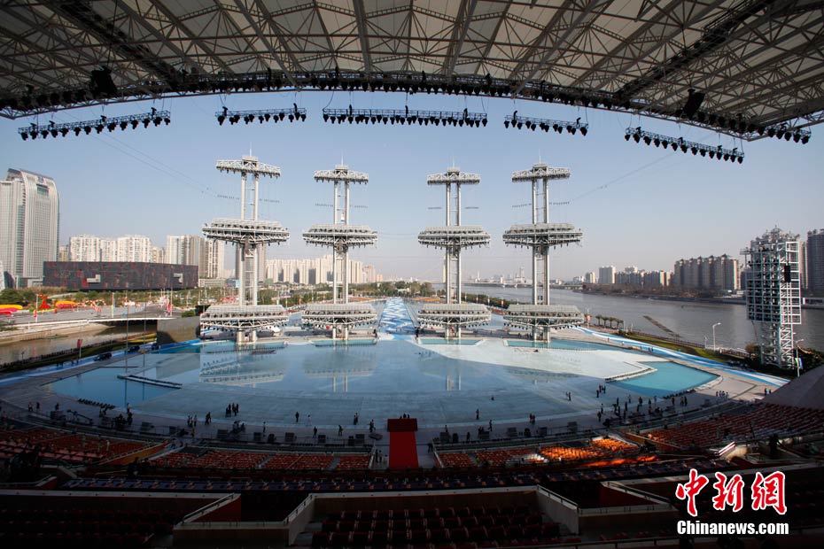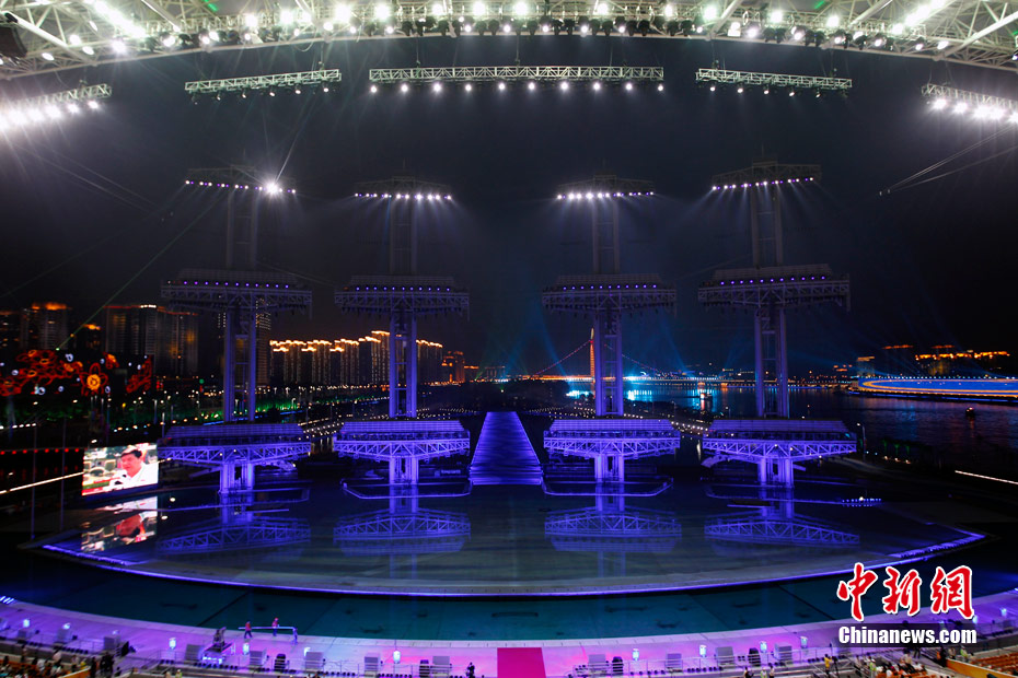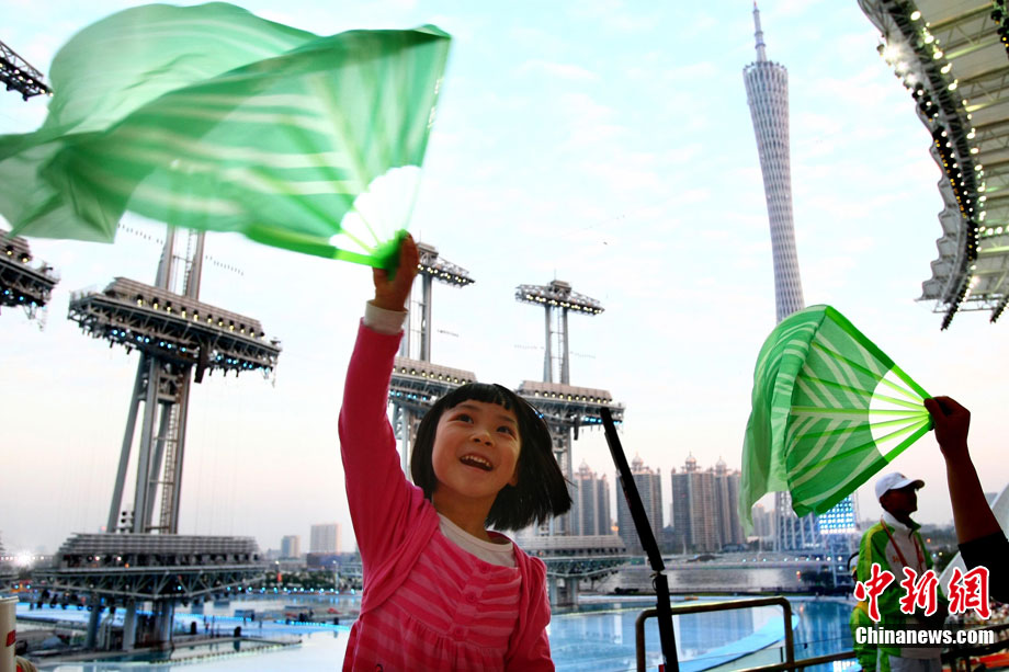 2010年11月12日,廣州海心沙島,16屆亞運(yùn)會(huì)開幕式今晚將在這里舉行。中新社記者 盛佳鵬 攝。