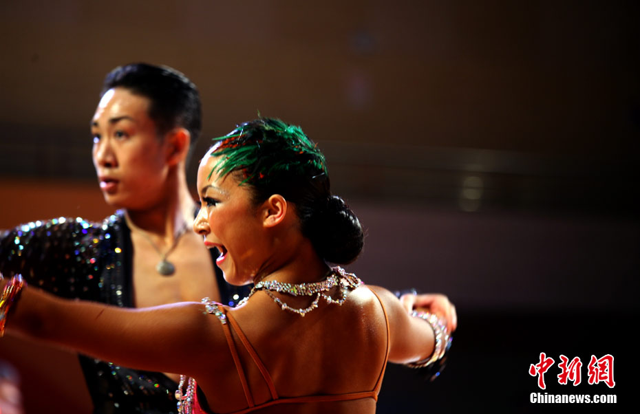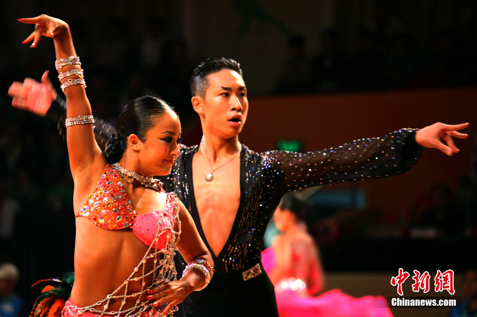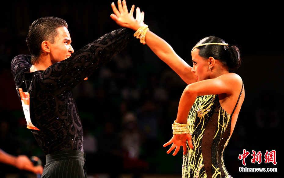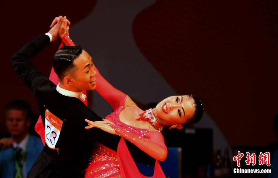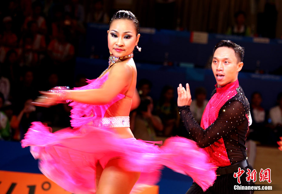 11月13日,首次成為亞運(yùn)會(huì)正式比賽項(xiàng)目的體育舞蹈比賽在廣州增城體育館拉開(kāi)帷幕。來(lái)著亞洲的頂尖舞者將在兩天的時(shí)間里角逐十個(gè)項(xiàng)目的金牌。選手們首先在標(biāo)準(zhǔn)舞華爾茲、探戈、狐步、快步和拉丁5項(xiàng)舞五個(gè)項(xiàng)目中給觀眾帶來(lái)美輪美奐的享受。中新社記者 張茵 攝