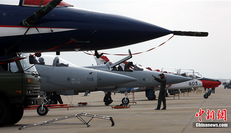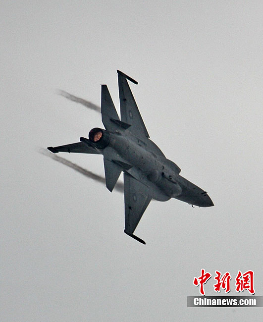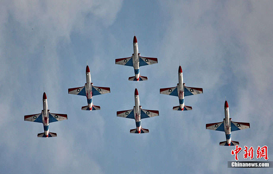 11月13日下午,巴基斯坦空軍“雄獅”飛行表演隊的飛行員駕駛k8教練機進行九機密集隊形飛行訓(xùn)練。昨日,巴基斯坦空軍“雄獅”飛行表演隊抵達珠海,這支表演隊由10架K8教練機和一架C130運輸保障機組成。由外國飛行員駕駛“中國造”飛機在中國航展上表演,必將是一道優(yōu)美而又特別的風景。圖為巴基斯坦空軍“雄獅”飛行表演隊的飛行員駕駛k8教練機進行九機密集隊形飛行訓(xùn)練。圖片來源:CNSPHOTO 喬天富 攝