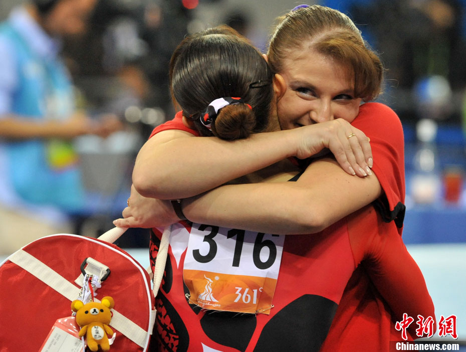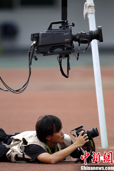 廣州亞運會體操女子團體比賽14日晚結(jié)束,中國隊以234.15分的成績奪冠,成功實現(xiàn)亞運十連冠。比賽結(jié)束后。來自亞洲地區(qū)各家媒體記者紛紛趕往攝影工作間抓緊時間處理稿件,爭取在第一時間將稿子發(fā)出。中新社記者 任海霞 攝