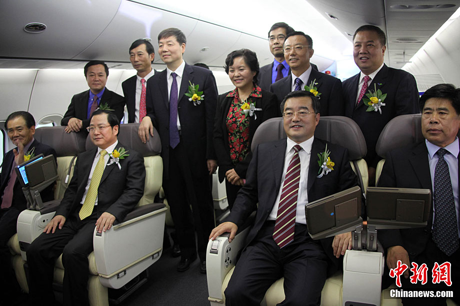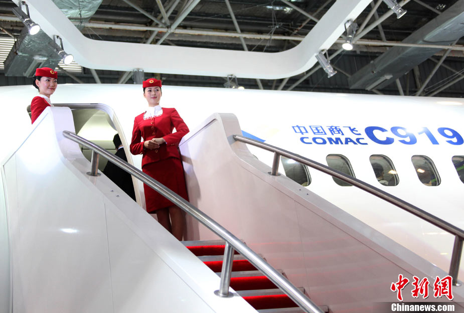 11月15日下午,中國C919大型客機展示樣機在珠海航展揭幕,這是中國C919大型客機1:1展示樣機首次亮相。中國C919大型客機是中國擁有自主知識產(chǎn)權(quán)的中短程商用干線飛機,其基本型全經(jīng)濟級布局為168座,混合級布局為156座,其標(biāo)準(zhǔn)航程型設(shè)計航程為4075公里,增大航程型設(shè)計航程為5555公里。按計劃,C919大型客機2010年完成初步設(shè)計,2012年完成詳細(xì)設(shè)計,2014年實現(xiàn)首飛,2016年完成適航取證并投放市場。中新社記者 孫自法 攝