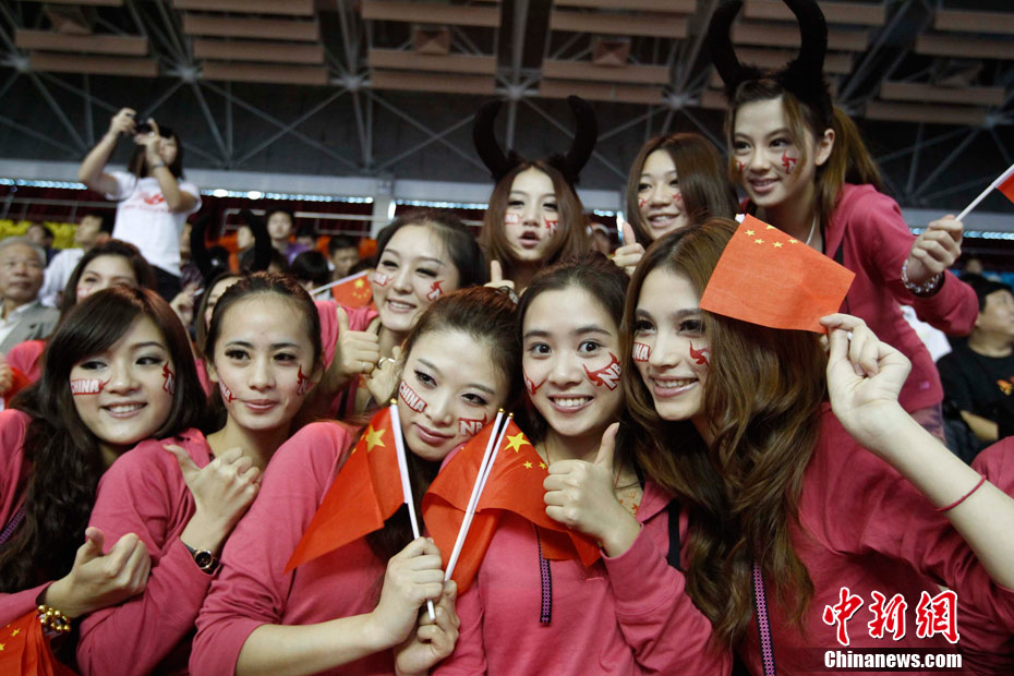 11月15日,廣州亞運會舉重比賽繼續(xù)在東莞舉行,看臺上一群美少女觀眾令賽場氣氛更為火爆。中新社記者 杜洋 攝
