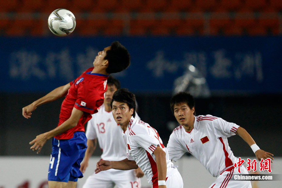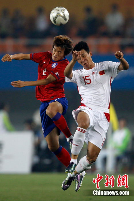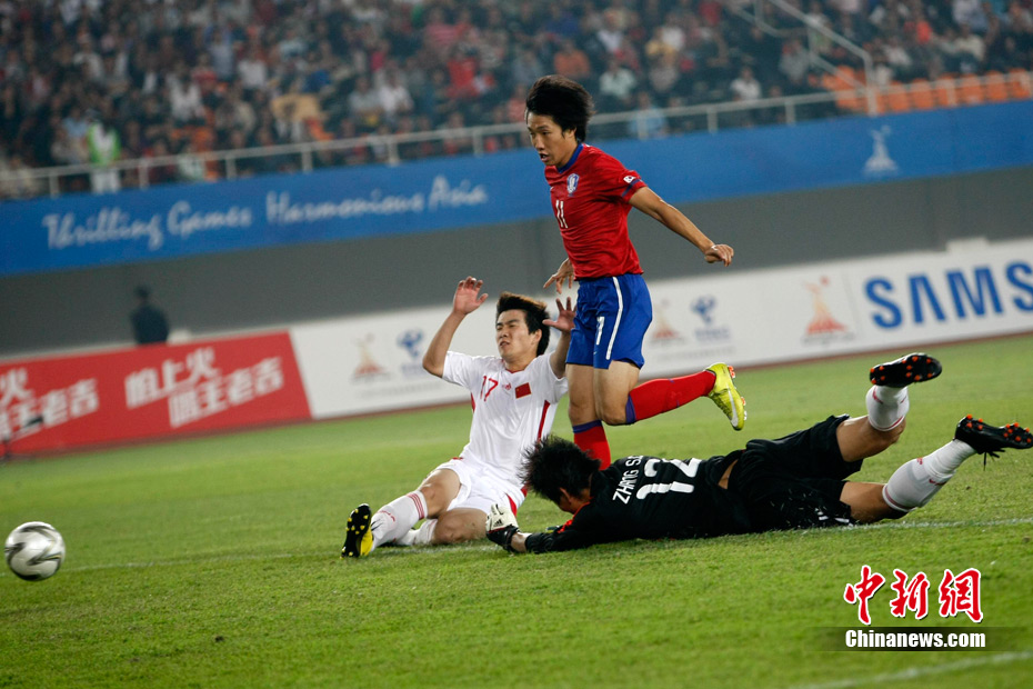 11月15日晚,2010廣州亞運(yùn)會(huì)男子足球1/8決賽中國(guó)隊(duì)與韓國(guó)隊(duì)的比賽在廣州天河體育場(chǎng)進(jìn)行,最終中國(guó)隊(duì)0:3不敵對(duì)手,止步16強(qiáng)。 中新社記者 盛佳鵬 攝