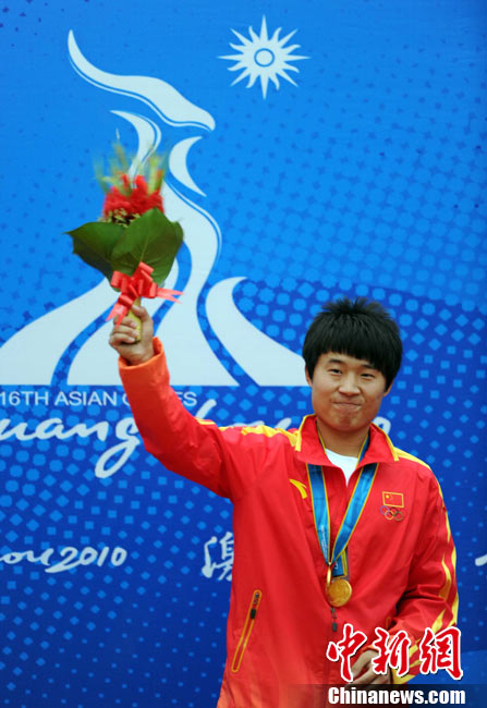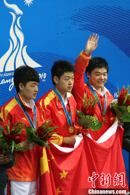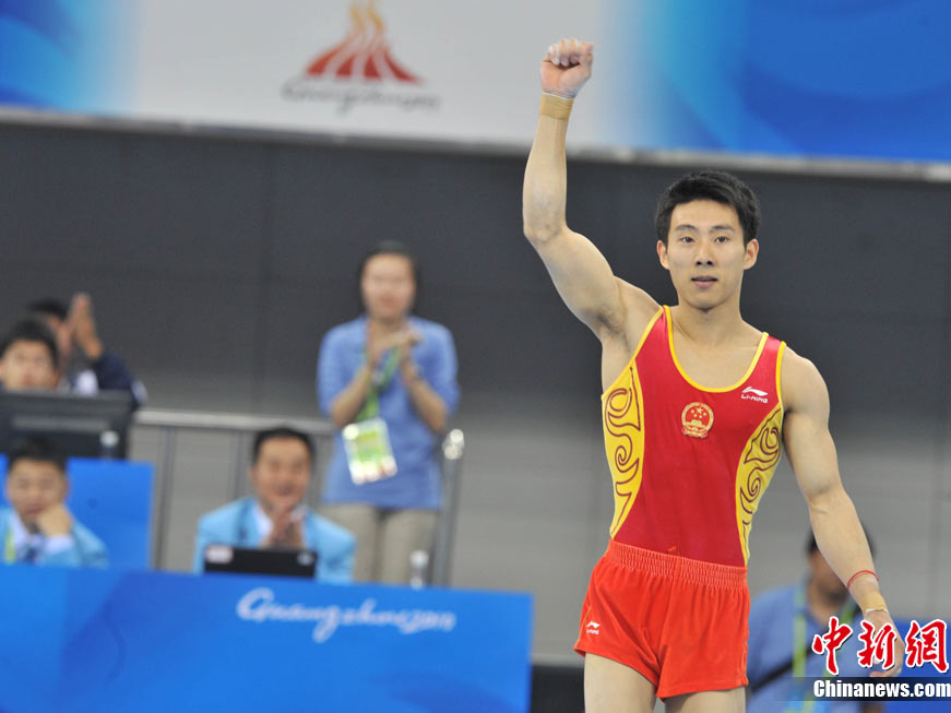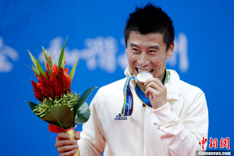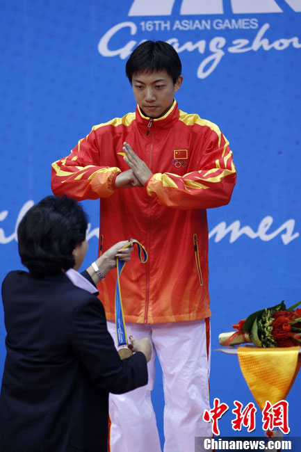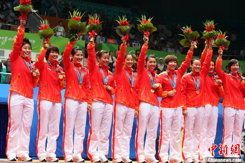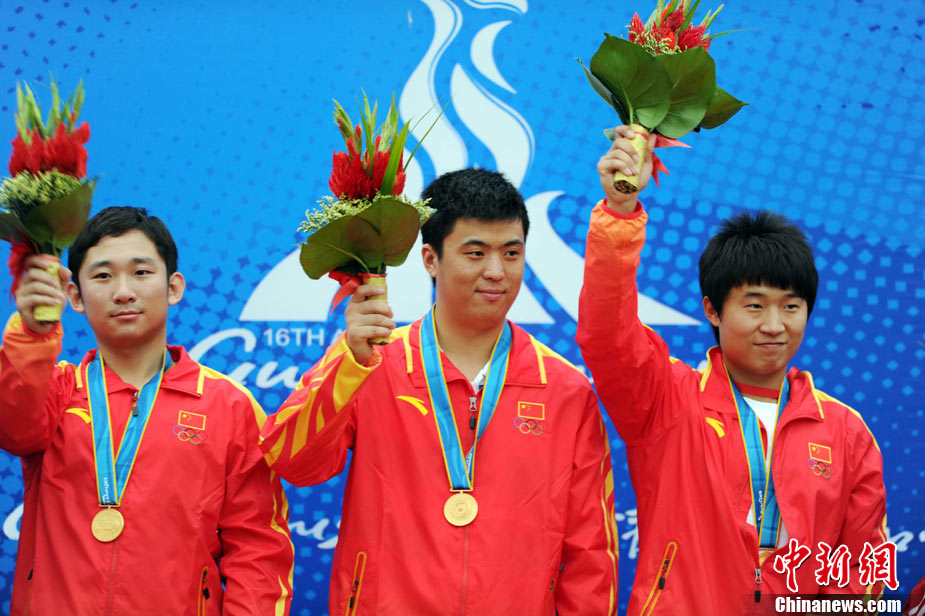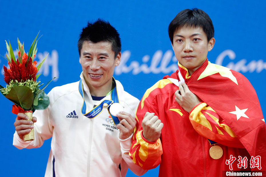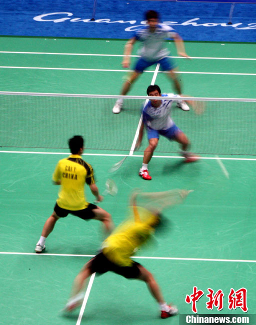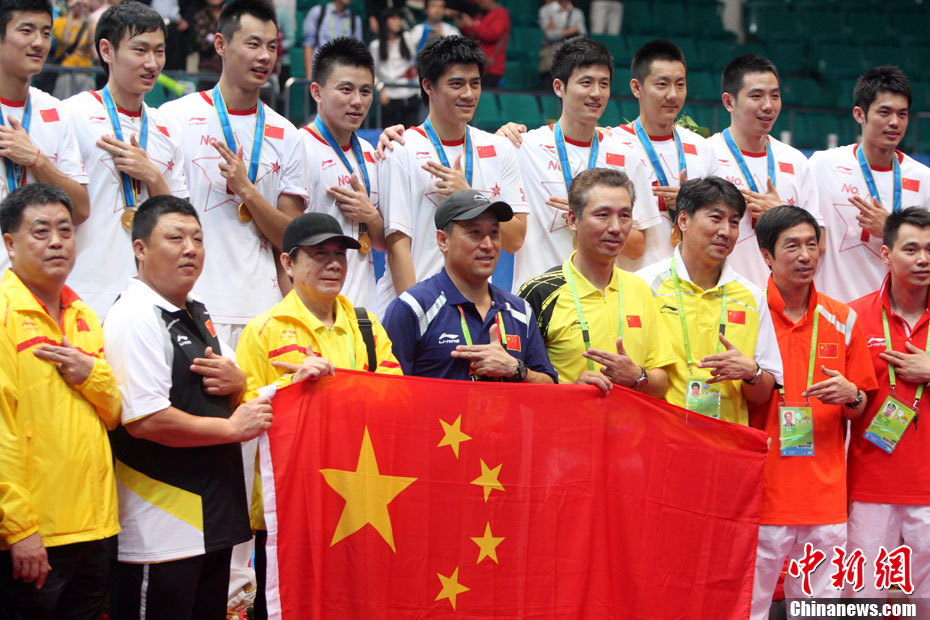 11月15日,在廣州進(jìn)行的第16屆亞運(yùn)會羽毛球男子團(tuán)體的決賽中,由名將林丹領(lǐng)銜的中國隊(duì)苦戰(zhàn)280分鐘以3比1戰(zhàn)勝韓國隊(duì)奪得冠軍。 中新社記者 湯彥俊 攝