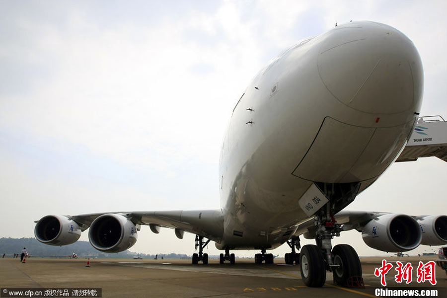 第八屆中國國際航空航天博覽會(huì)16日將在珠海開幕。圖為將在航展上亮相的“空中巨無霸”空中客車A380。中新社發(fā) 喬天富 攝 圖片來源:CNSPHOTO