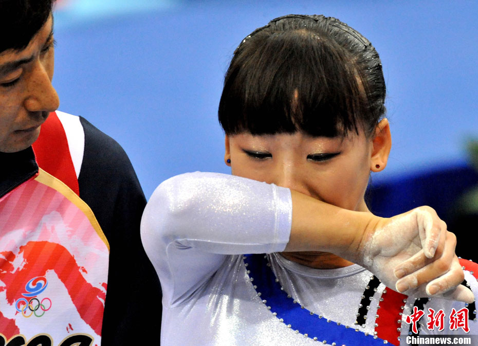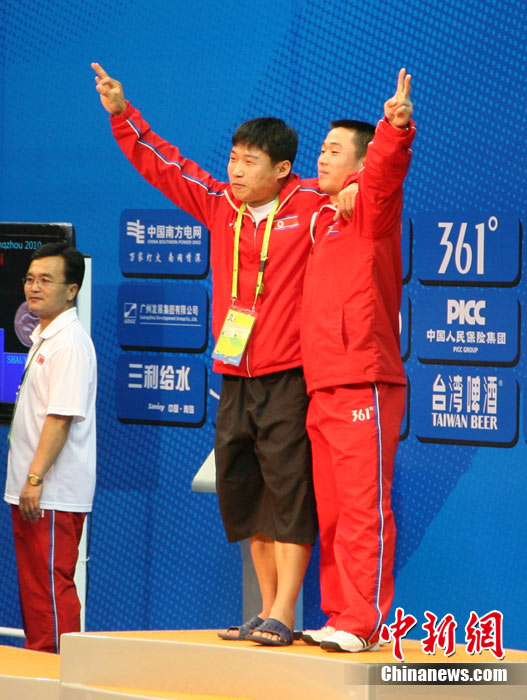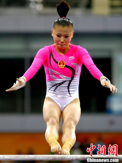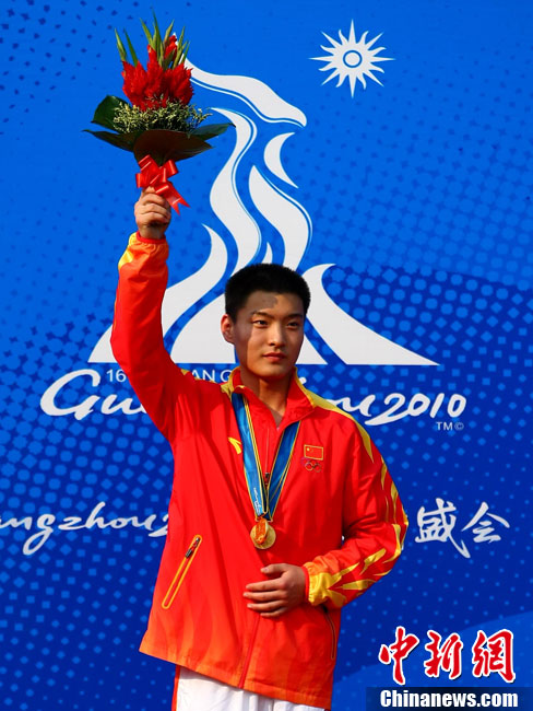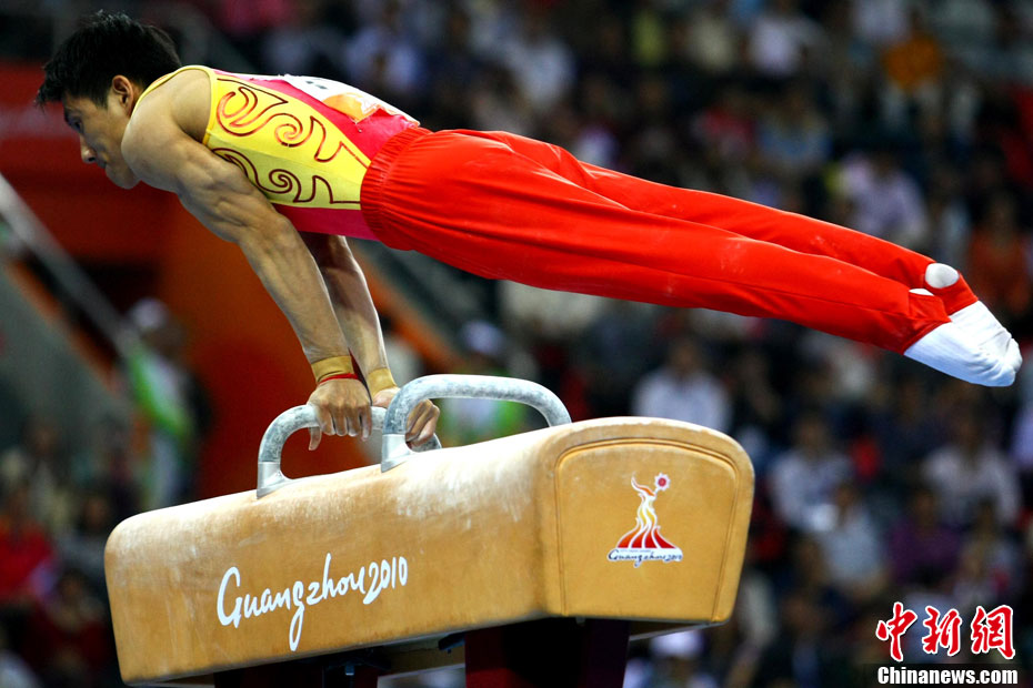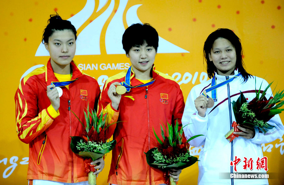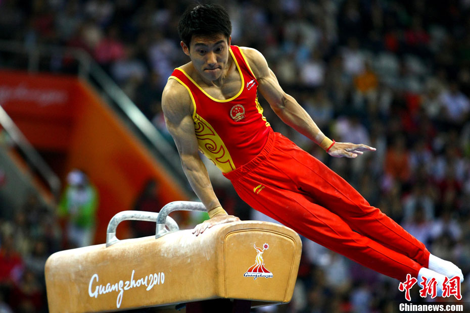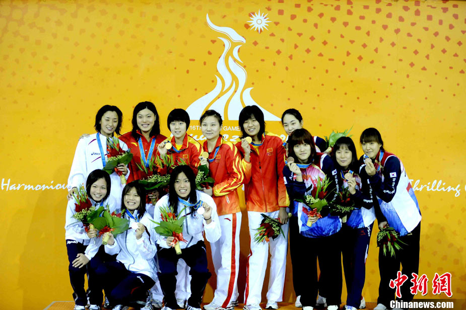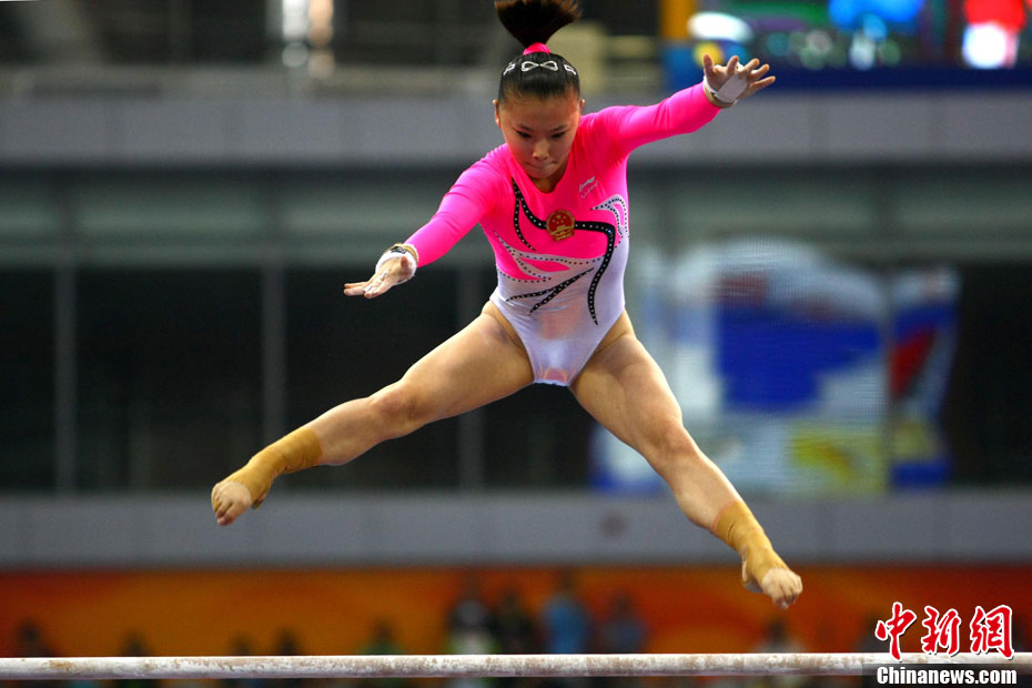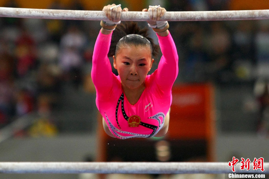 11月16日,2010年廣州亞運(yùn)會(huì)體操比賽繼續(xù)在亞運(yùn)城體育館進(jìn)行。在女子高低杠的爭(zhēng)奪中,中國選手何可欣技高一籌,以16.425的高分封后。她的隊(duì)友黃秋爽摘得銀牌,日本選手鶴見虹子獲得第三。圖為霍啟剛(為)何可欣頒獎(jiǎng)。中新社記者 富田 攝