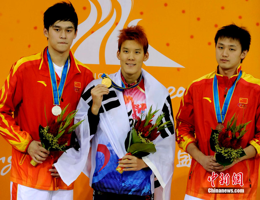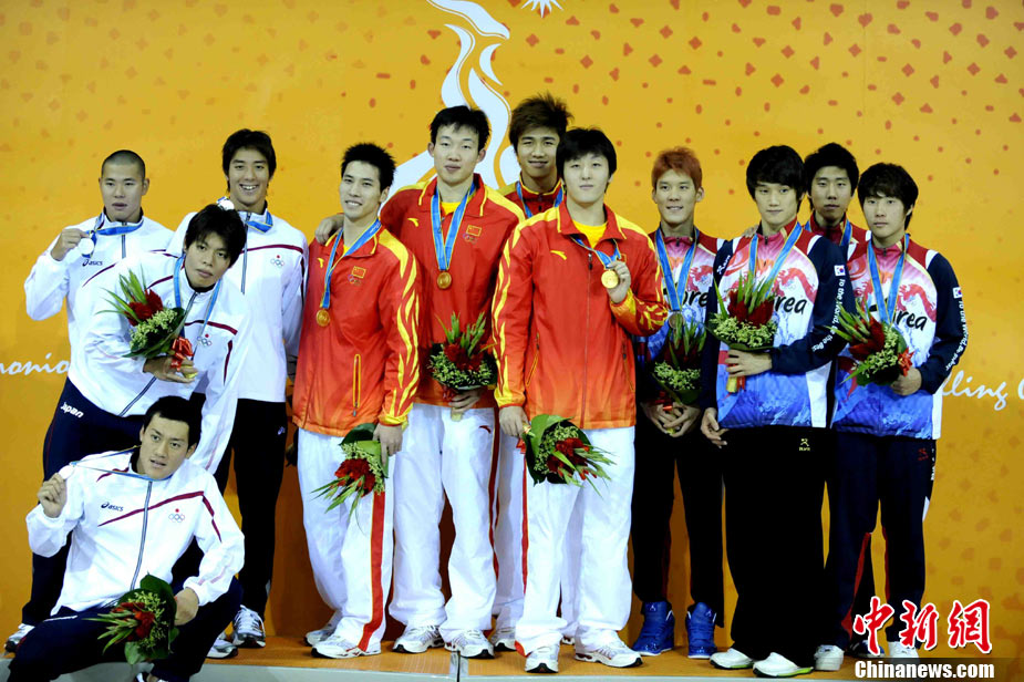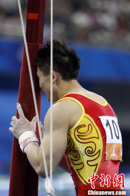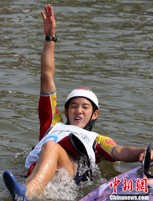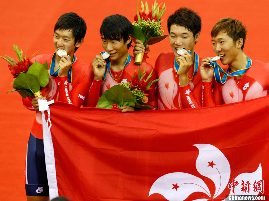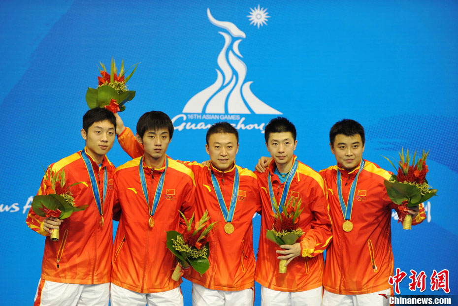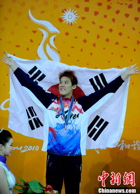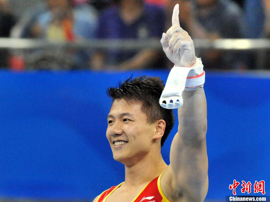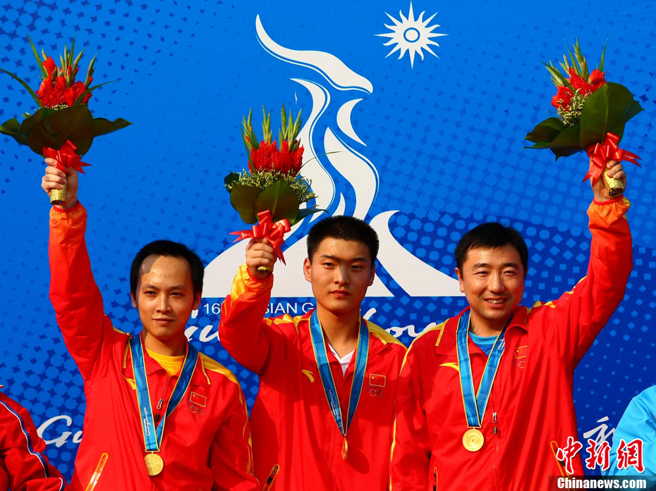 11月16日,2010年廣州亞運(yùn)會(huì)體操比賽繼續(xù)在亞運(yùn)城體育館進(jìn)行。在女子高低杠的爭(zhēng)奪中,中國選手何可欣技高一籌,以16.425的高分封后。她的隊(duì)友黃秋爽摘得銀牌,日本選手鶴見虹子獲得第三。圖為霍啟剛(為)何可欣頒獎(jiǎng)。中新社記者 富田 攝
