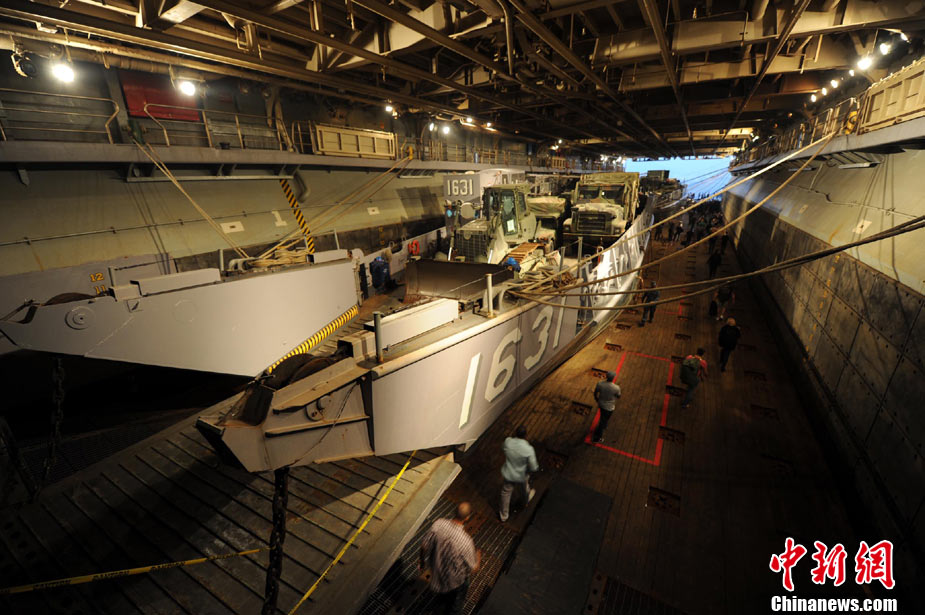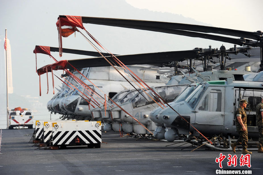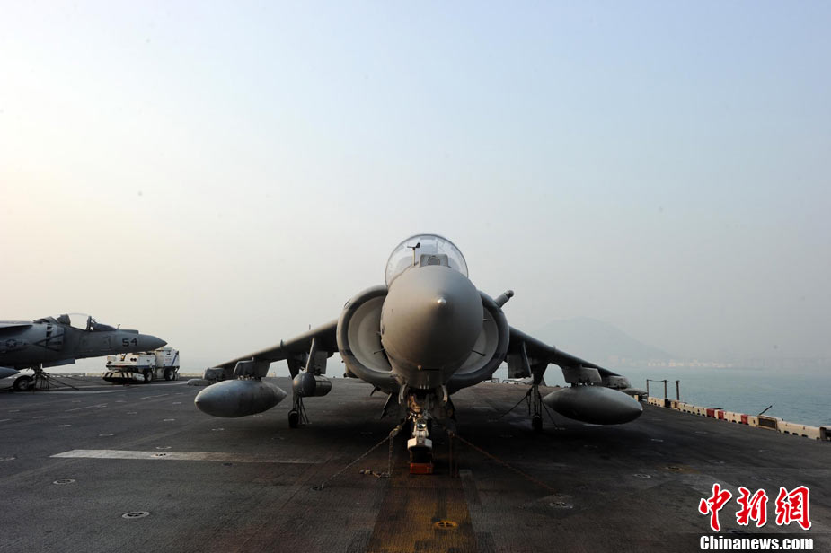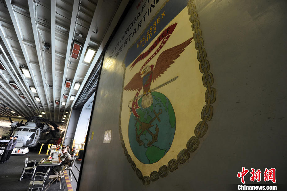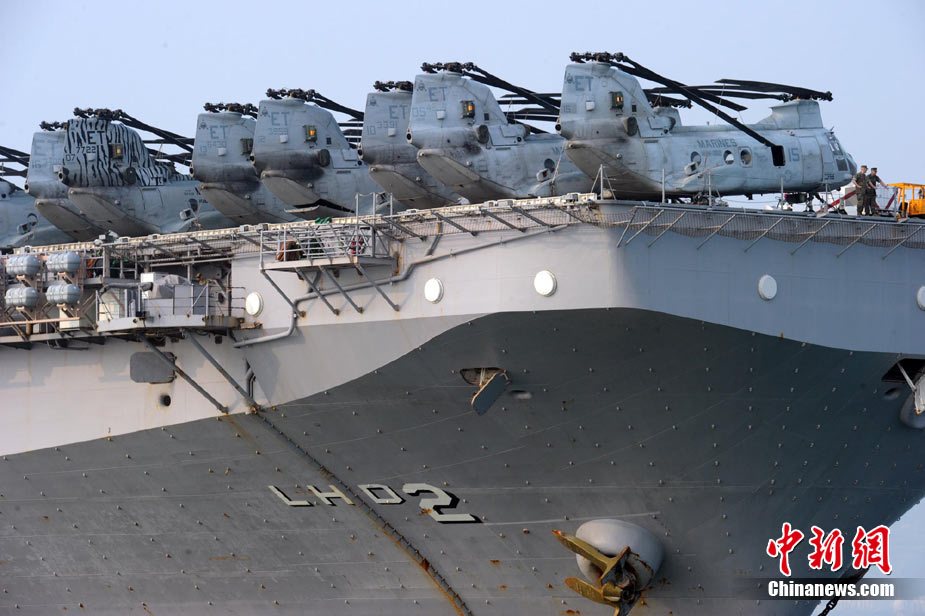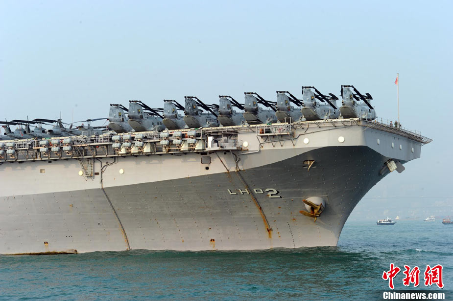 有“鋼鐵短吻鱷”之稱(chēng)的“埃塞克斯”號(hào),搭載有AV-8B“鷂”式戰(zhàn)機(jī)、CH-53E“海上種馬”直升機(jī)、CH-46E“海上騎士”直升機(jī)、UH-1N超級(jí)休伊直升機(jī)等逾30架各型機(jī)型,以及超過(guò)2200名船員和海軍官兵。中新網(wǎng)記者 鄭祚聲 攝