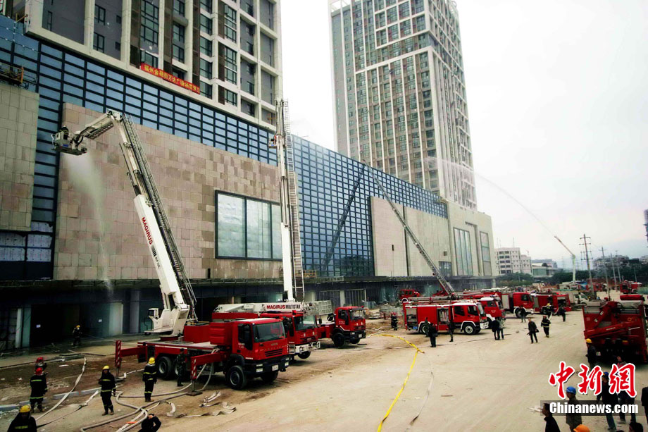 中新網(wǎng)福州11月18日電 (朱曉航 黃綠榮)為吸取“11.15”上海市靜安區(qū)膠州路在建高層教師公寓樓特大火災(zāi)事故教訓(xùn),福州18日在該市臺江區(qū)舉行了一場大型滅火救援演練。