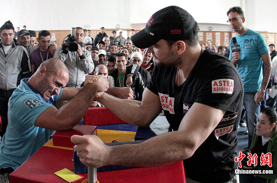 當(dāng)?shù)貢r(shí)間11月18日,羅馬尼亞首都布加勒斯特的監(jiān)獄舉行了掰手腕大賽。90公斤級世界掰手腕世界冠軍Ion Oncescu也親臨現(xiàn)場。