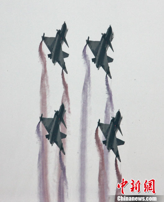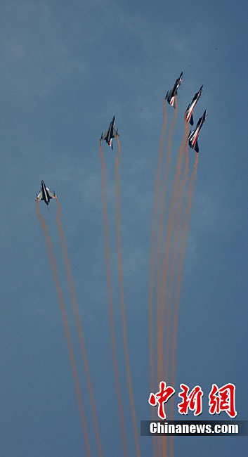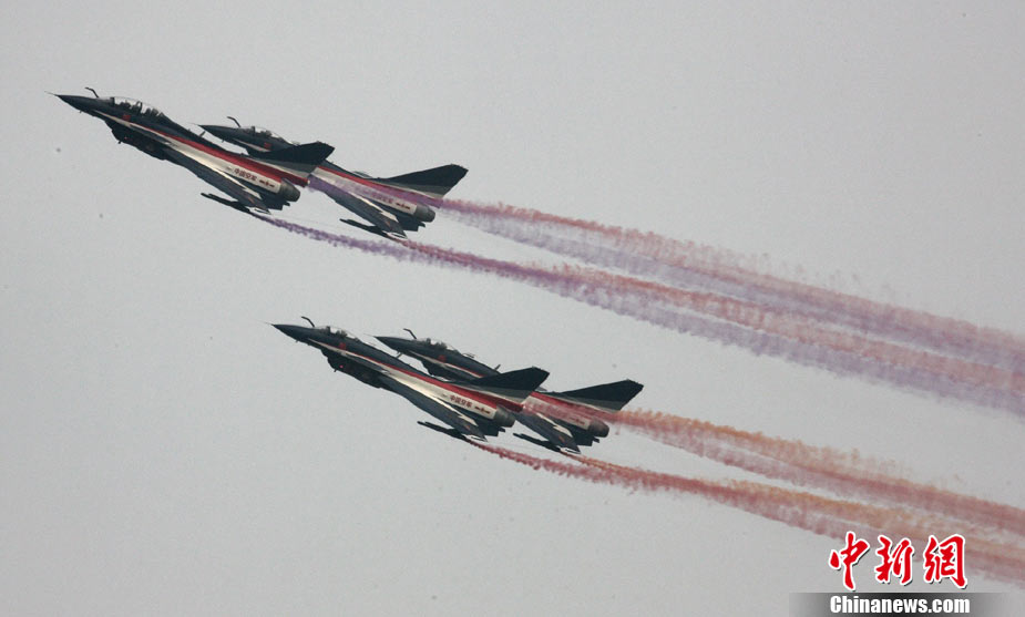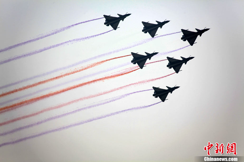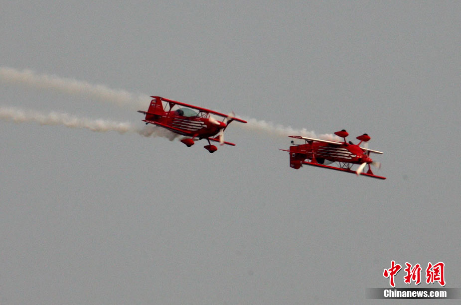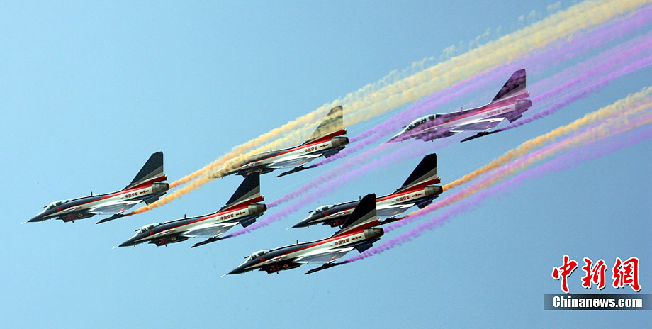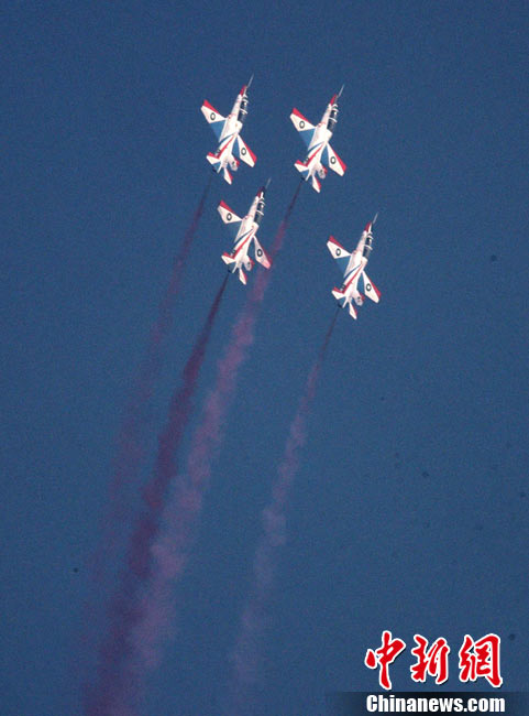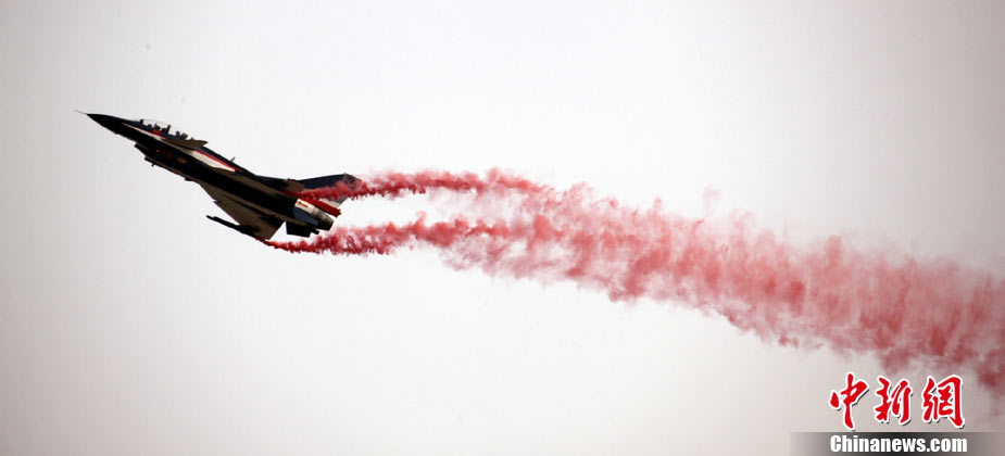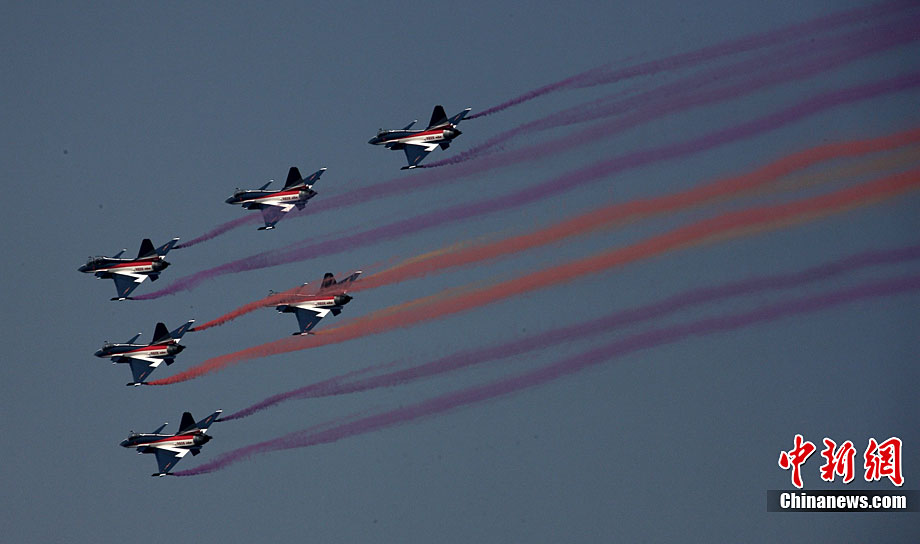 11月19日,在珠海第8屆中國(guó)國(guó)際航空航天博覽會(huì)上,巴基斯坦空軍雄獅飛行表演隊(duì)的空中英豪們駕駛k8教練機(jī),憑借高超的飛行技藝,以珠海機(jī)場(chǎng)上空為舞臺(tái),承、轉(zhuǎn)、啟、合,任意揮灑,給觀看的中外賓客以視覺(jué)享受。中新社發(fā) 喬天富 攝 圖片來(lái)源:CNSPHOTO
