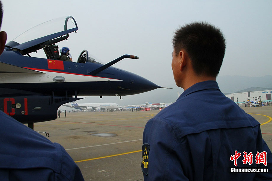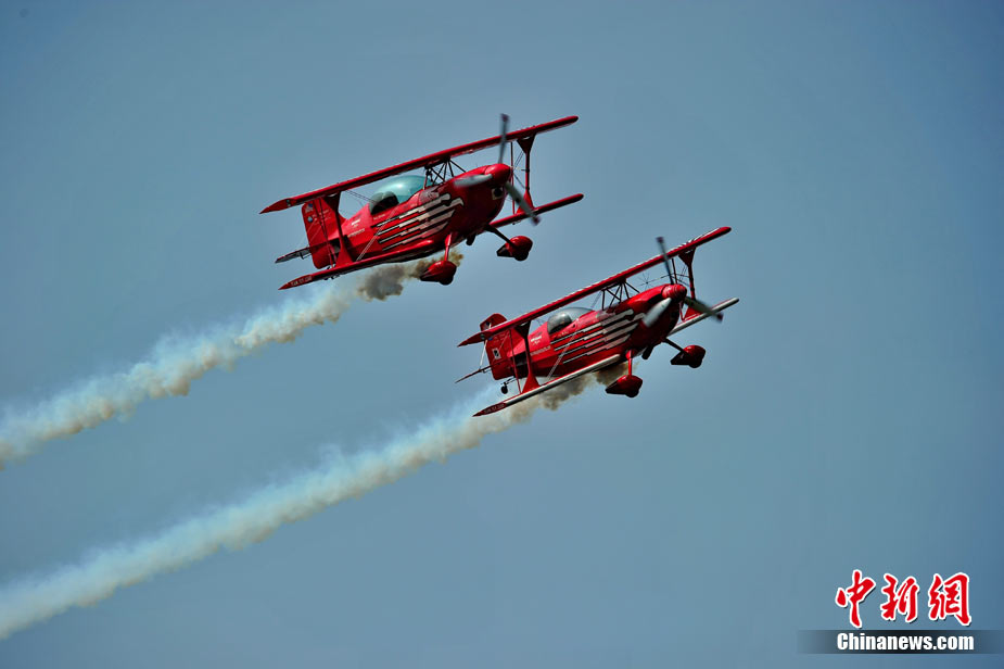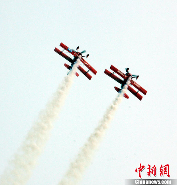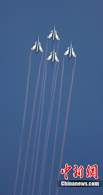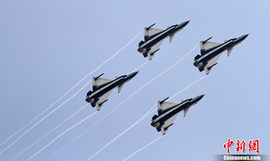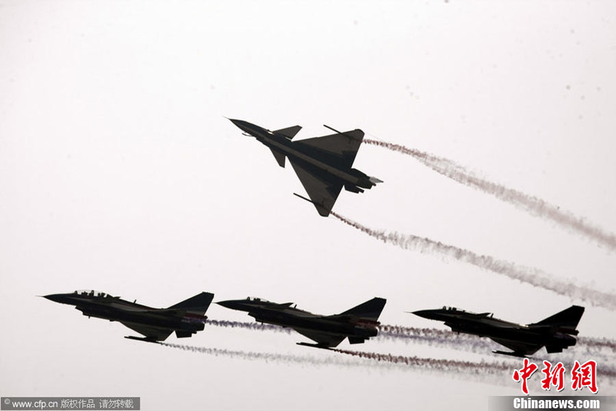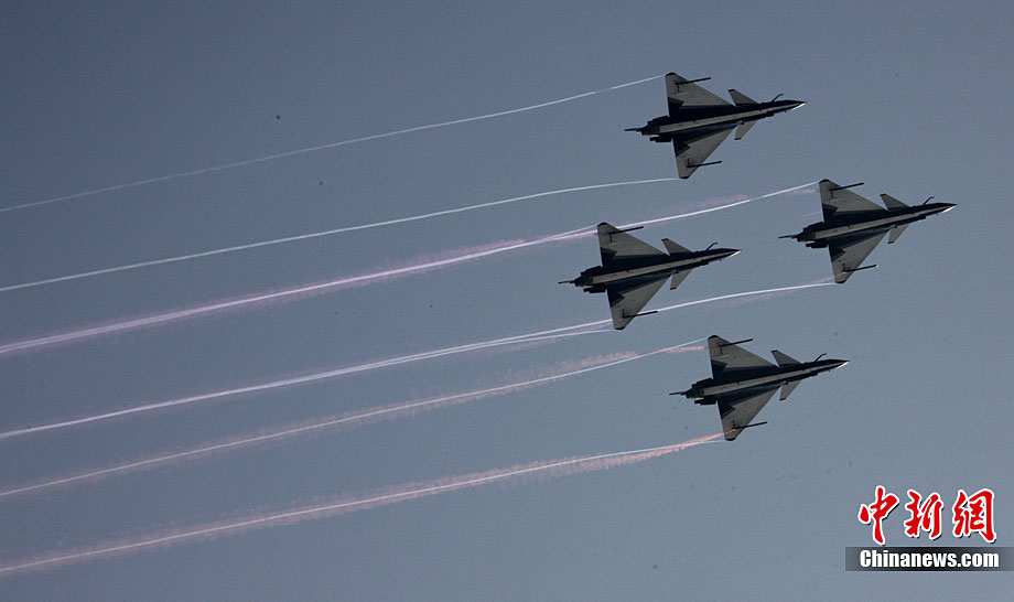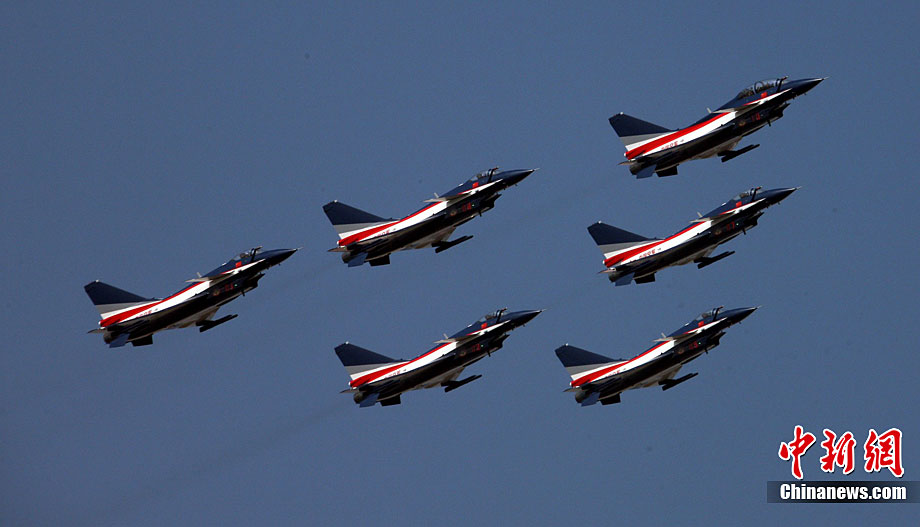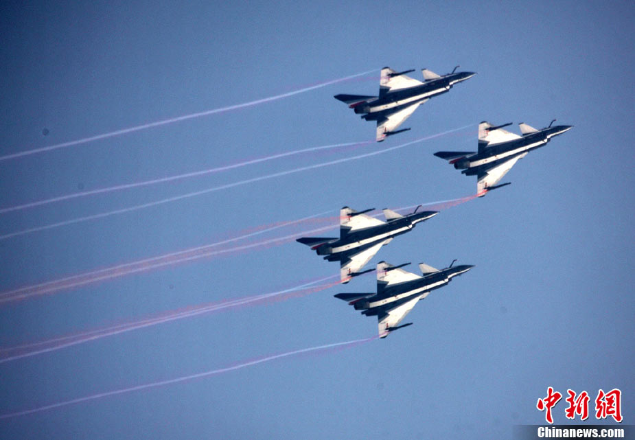 11月19日,在珠海第8屆中國(guó)國(guó)際航空航天博覽會(huì)上,巴基斯坦空軍雄獅飛行表演隊(duì)的空中英豪們駕駛k8教練機(jī),憑借高超的飛行技藝,以珠海機(jī)場(chǎng)上空為舞臺(tái),承、轉(zhuǎn)、啟、合,任意揮灑,給觀看的中外賓客以視覺(jué)享受。中新社發(fā) 喬天富 攝 圖片來(lái)源:CNSPHOTO
