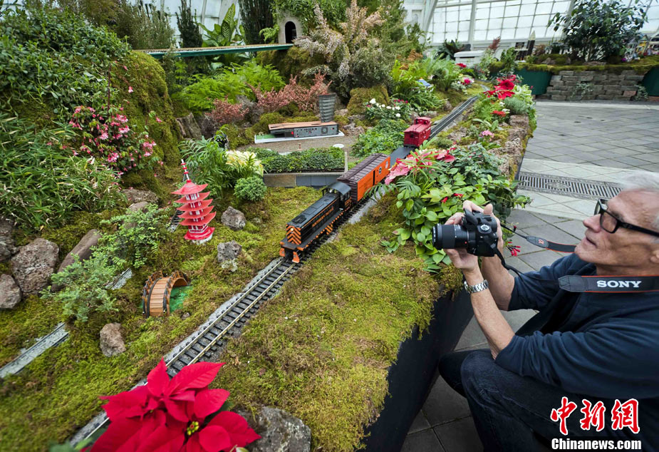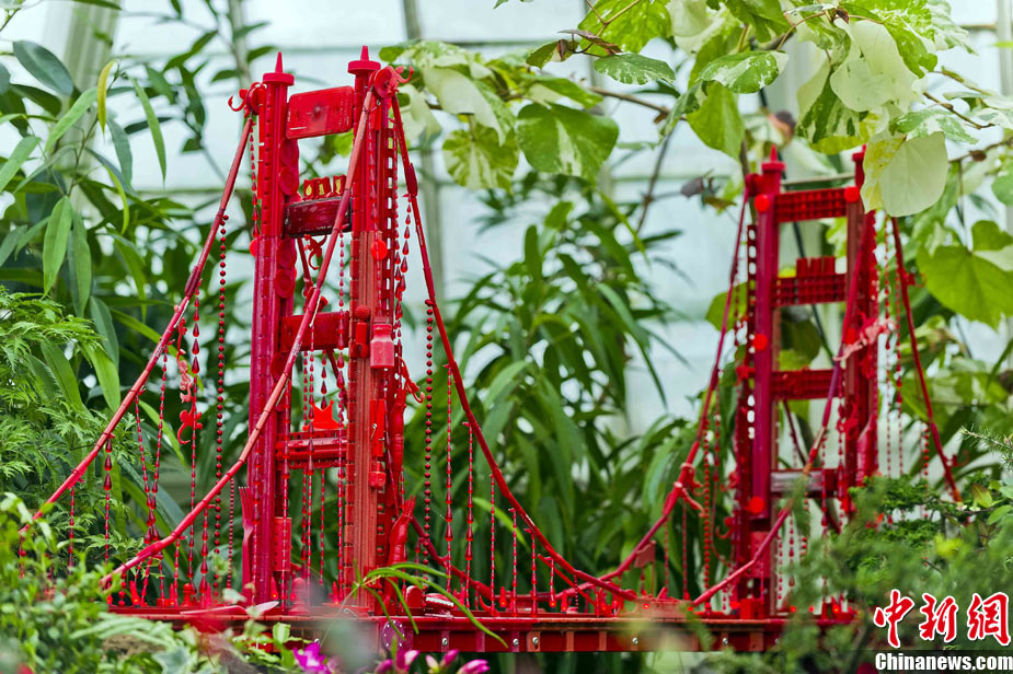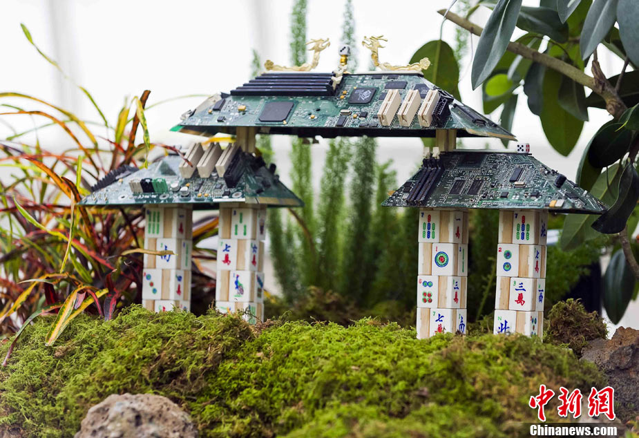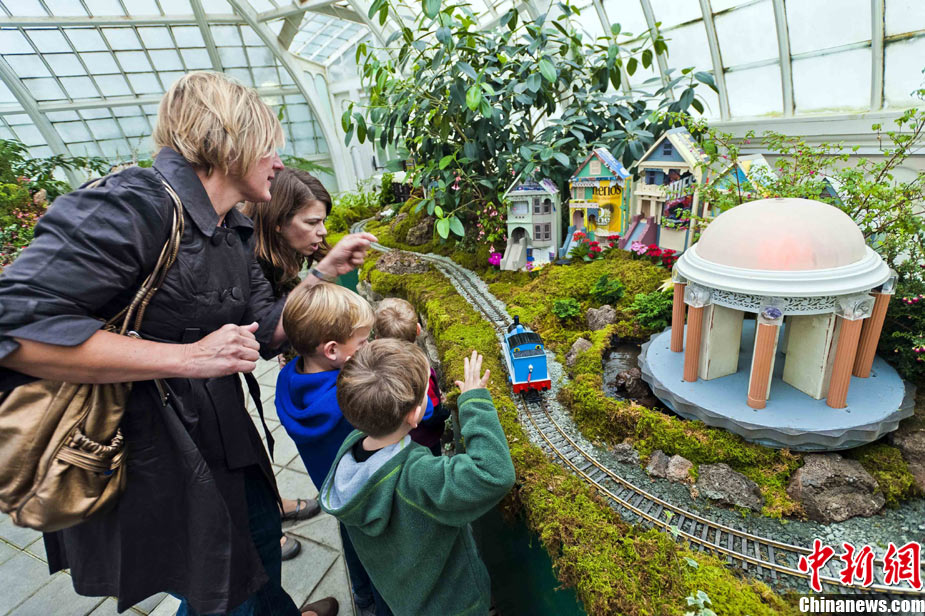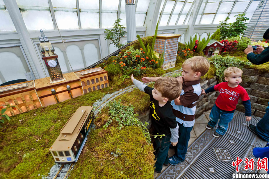 當(dāng)?shù)貢r間11月19日,美國舊金山金門公園展出藝術(shù)家以廢舊物品制成的袖珍版城市地標,作為公園140周年紀念的特別禮物,以環(huán)保節(jié)能主題再現(xiàn)這座城市的獨特魅力。圖為兒童對好奇觀看用舊刀叉、牙簽、酒瓶塞、刮刀等搭建的舊金山輪渡大廈。中新社發(fā) 陳鋼 攝