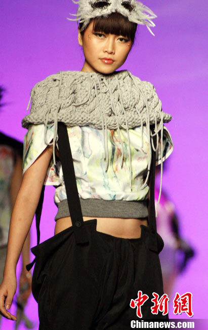 11月20日晚,正在虎門舉行的第15屆中國(虎門)國際服裝交易會(huì)上推出“第11屆“虎門杯”國際青年設(shè)計(jì)女裝設(shè)計(jì)大賽”,本次大賽主題為“詠、碳、調(diào)”,旨在引導(dǎo)青年設(shè)計(jì)師關(guān)注全球氣溫變暖、環(huán)境污染等問題,選用環(huán)保面料,選自英國、法國、俄羅斯、捷克以及中國兩岸四地的30名青年設(shè)計(jì)師參加了大賽。圖為新絲路模特展示各國參賽設(shè)計(jì)師環(huán)保面料作品。中新社記者 錢興強(qiáng) 攝