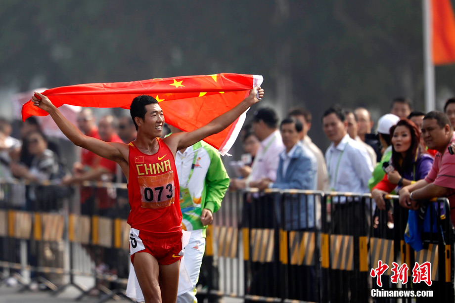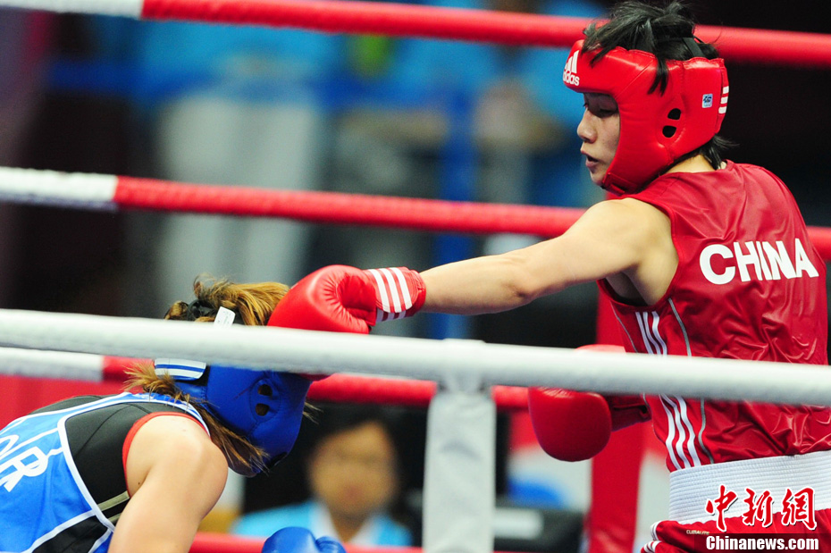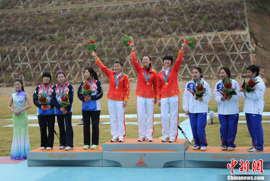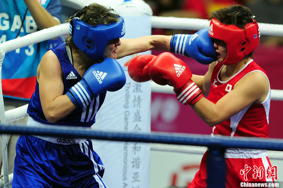 11月21日,廣州亞運(yùn)會橄欖球比賽拉開帷幕,首場揭幕戰(zhàn)中,中國女隊(紅)51比0大勝韓國女隊。中新社記者 盛佳鵬 攝