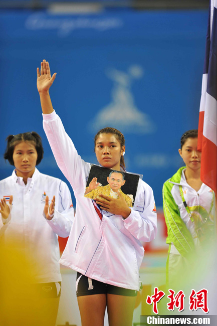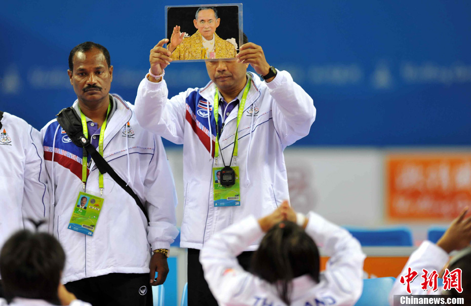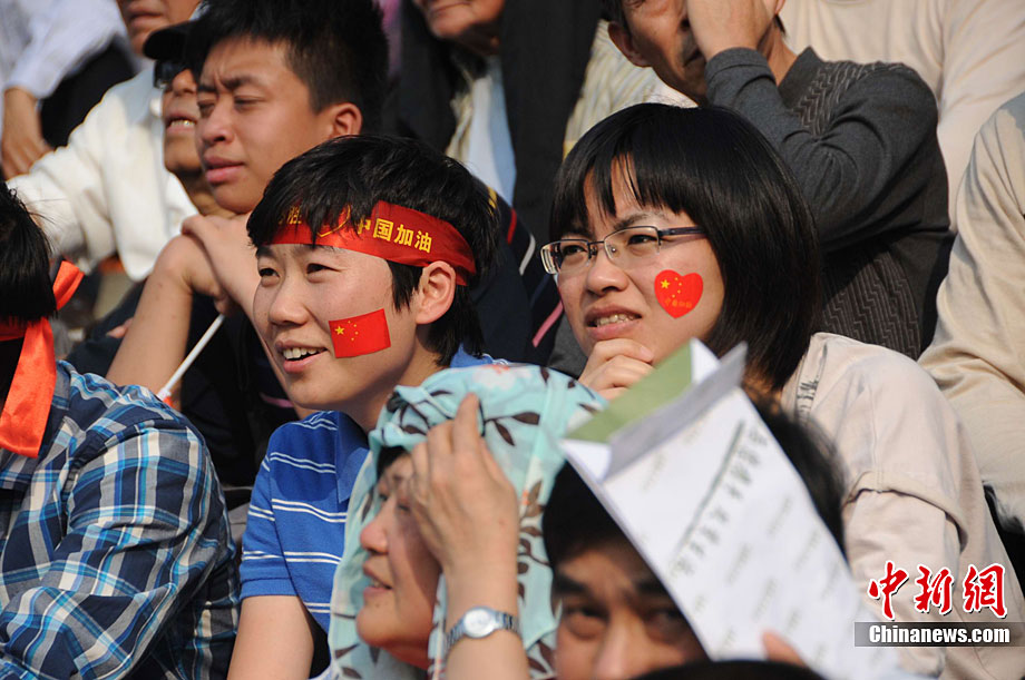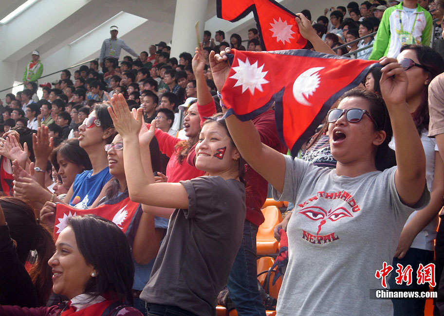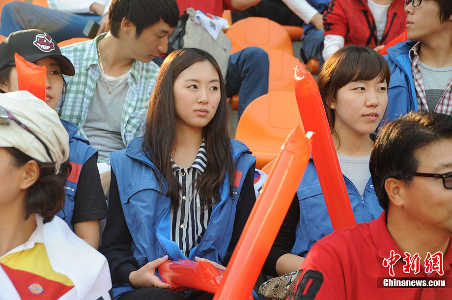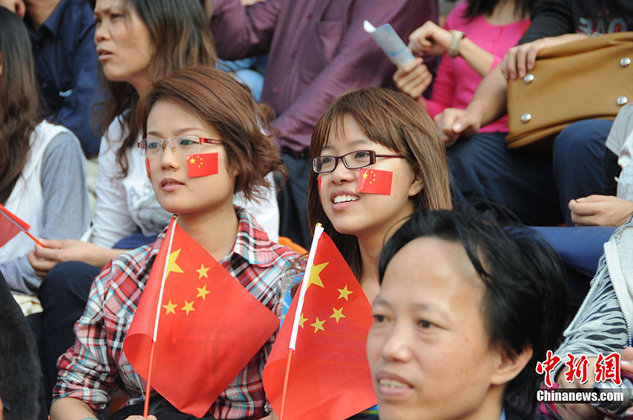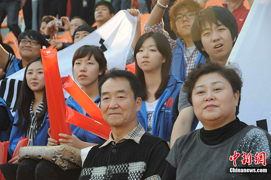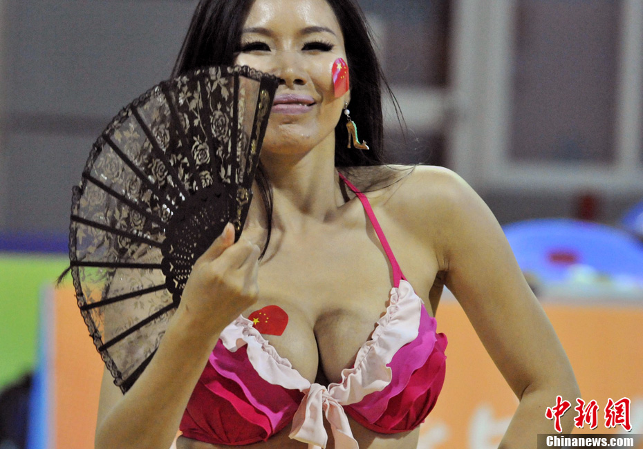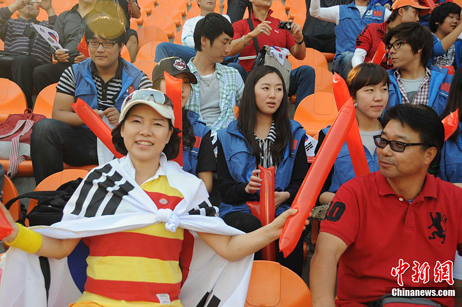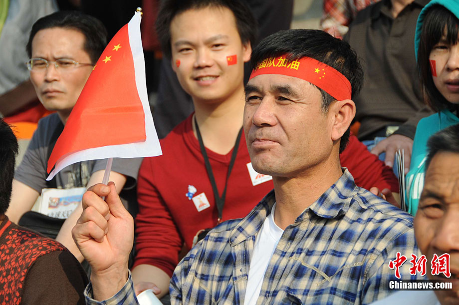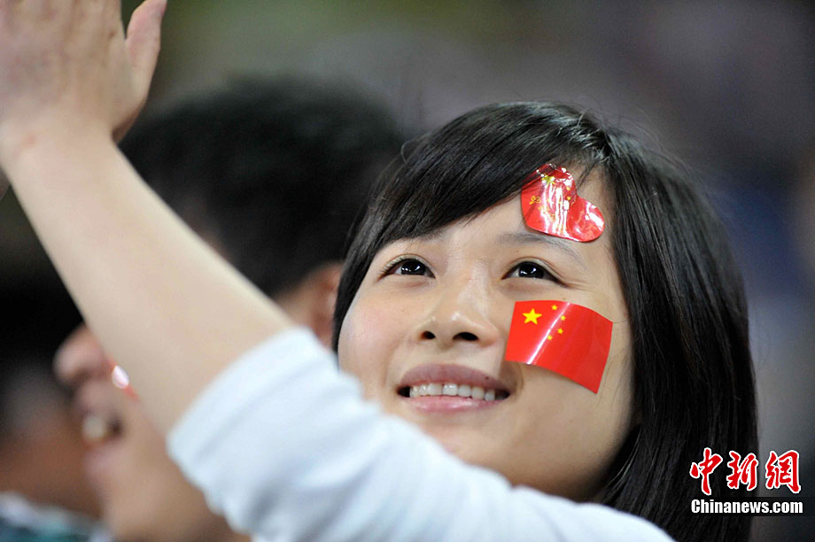 廣州亞運(yùn)會(huì)女子足球賽中國(guó)隊(duì)與韓國(guó)隊(duì)的銅牌爭(zhēng)奪戰(zhàn)11月22日在廣州天河體育館開(kāi)打。圖為賽場(chǎng)上熱情的中國(guó)球迷。中新社記者 唐貴江 攝