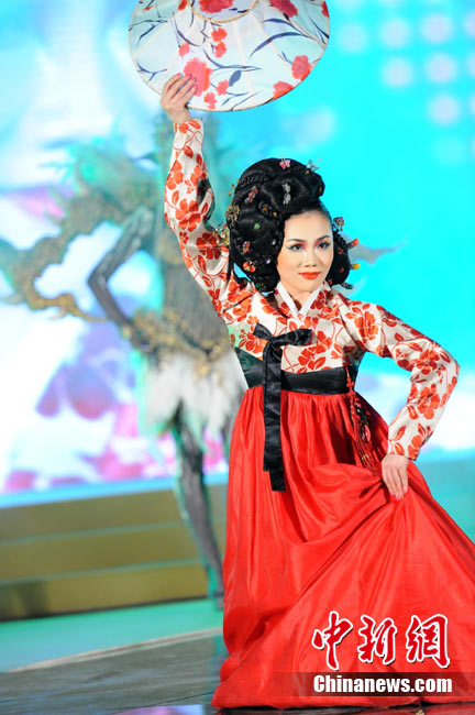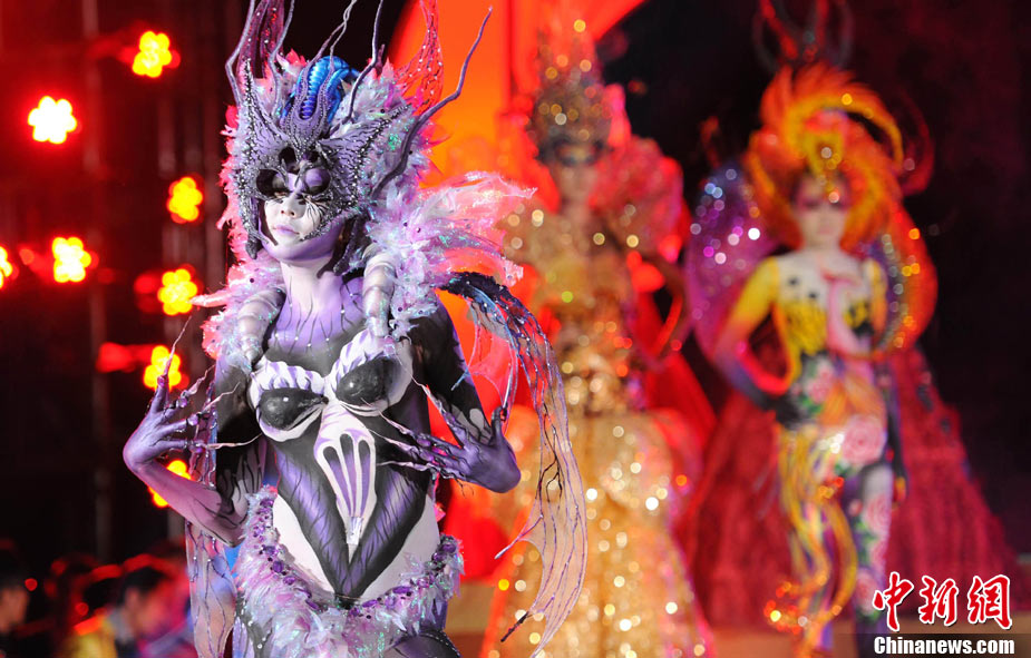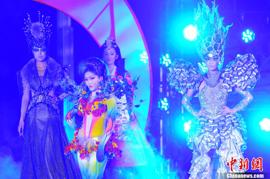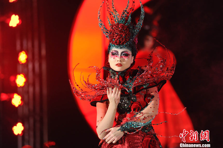 11月22日晚,第十屆中國國際美容美發(fā)化妝師全能大賽頒獎晚會在北京隆重舉辦。被業(yè)界譽為“中華美業(yè)第一賽”的全能大賽是中國一個超大規(guī)模的專業(yè)性賽事,當天,容納6000多人的會場座無虛席。在400平米的專業(yè)舞臺上,來自日本、韓國、馬來西亞、新加坡及中國20多個省市自治區(qū)的40余支代表隊共400多名選手同臺競技,100多名專家評委現(xiàn)場評判。比賽過程精彩紛呈,亮點不斷,艷麗夸張的模特造型令觀眾大飽眼福。中新社記者 李學仕 攝