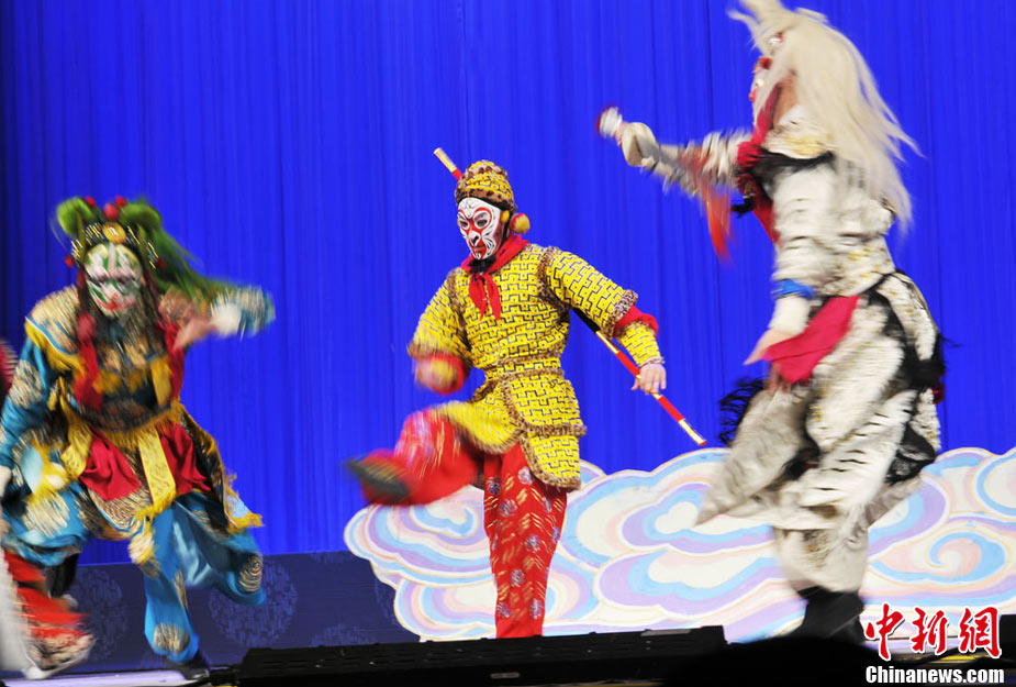 11月23日晚,由京劇名家于魁智率領(lǐng)的國(guó)家京劇院一團(tuán)的京劇演員在蘭州金城大劇院為蘭州學(xué)子送上“京劇名家進(jìn)校園”精美的文化大餐。這次演出活動(dòng)是“2010甘肅省高雅藝術(shù)進(jìn)校園”活動(dòng)的重要組成部分。楊艷敏 攝