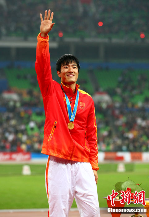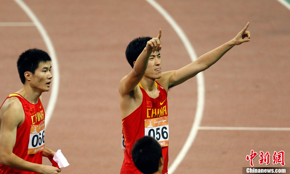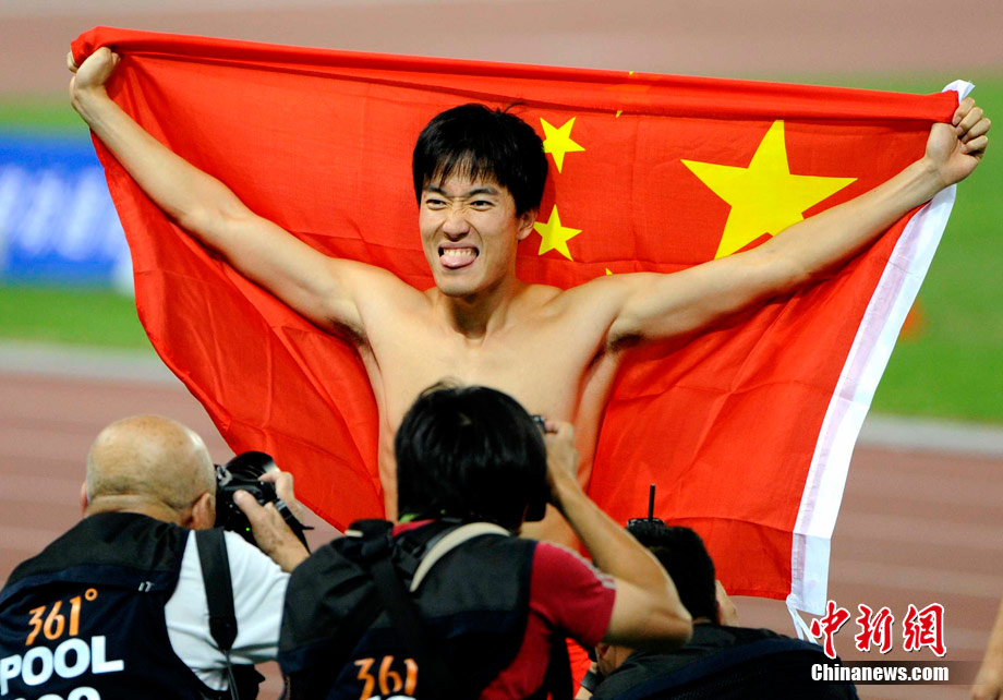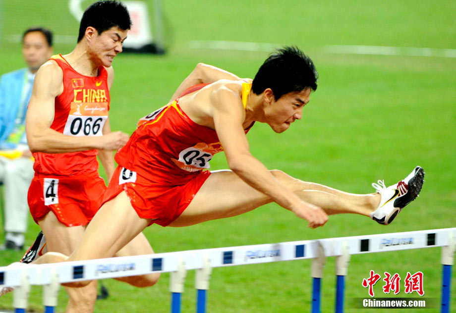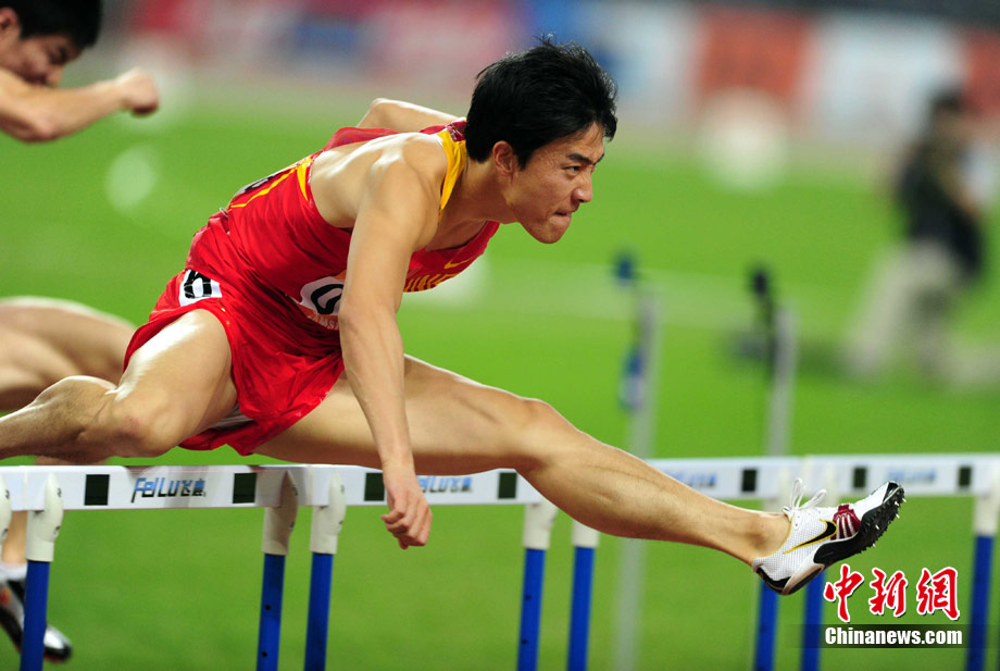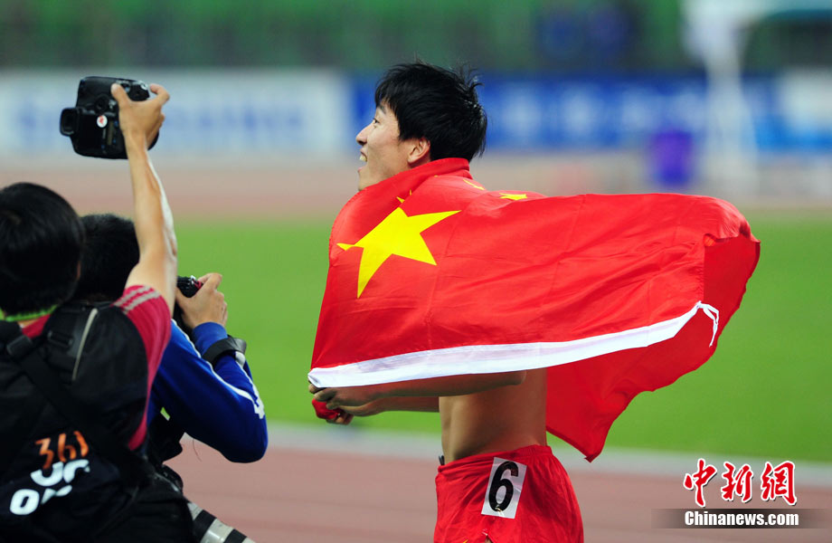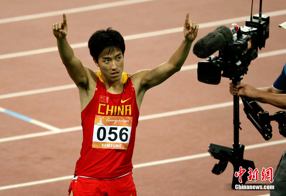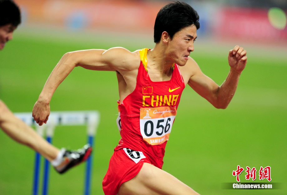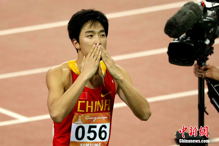 11月24日,廣州亞運(yùn)會(huì)男子110米欄決賽,劉翔以13秒09的成績(jī)奪得金牌,這一成績(jī)打破了亞運(yùn)會(huì)紀(jì)錄。劉翔以一場(chǎng)酣暢淋漓的勝利宣告了自己的回歸。中新社記者 王東明 攝