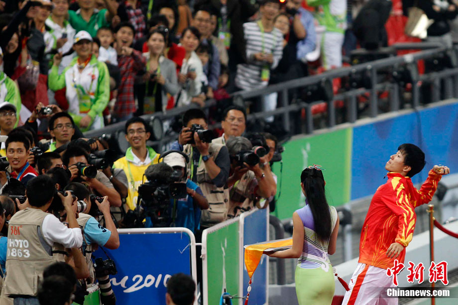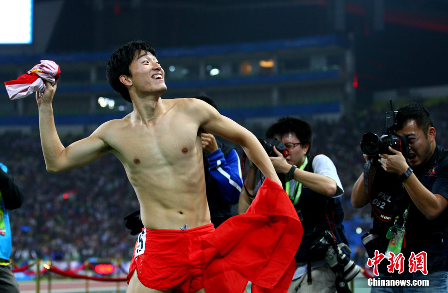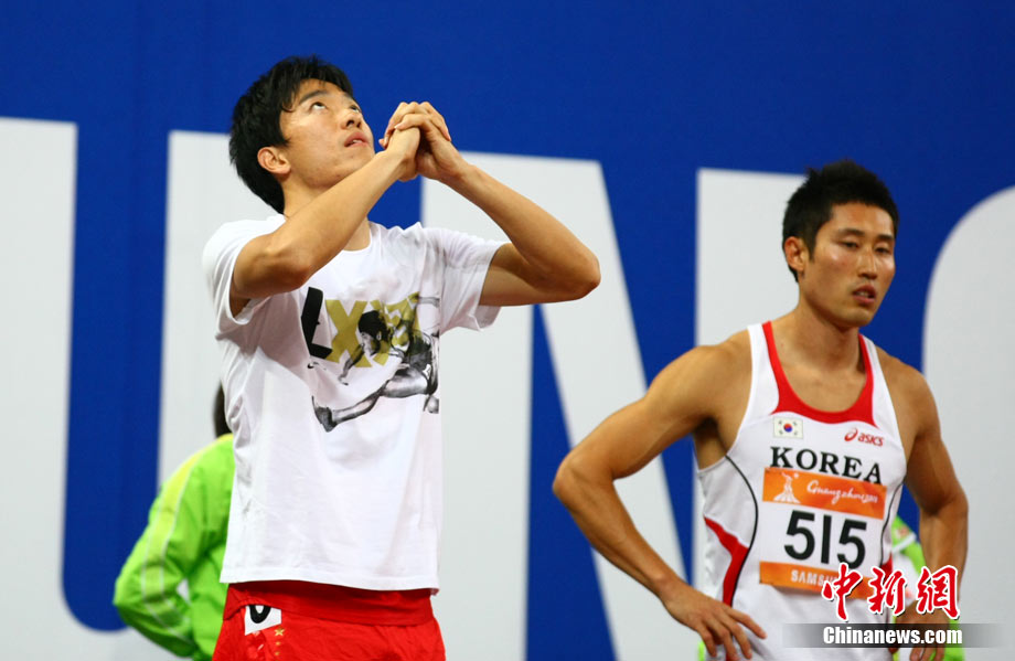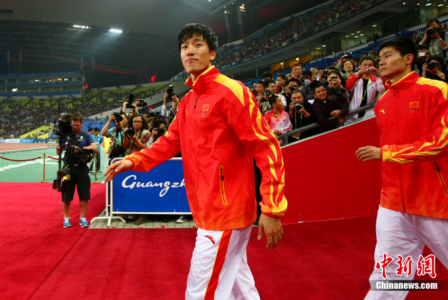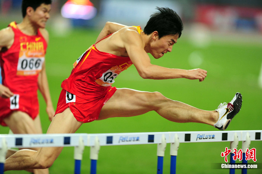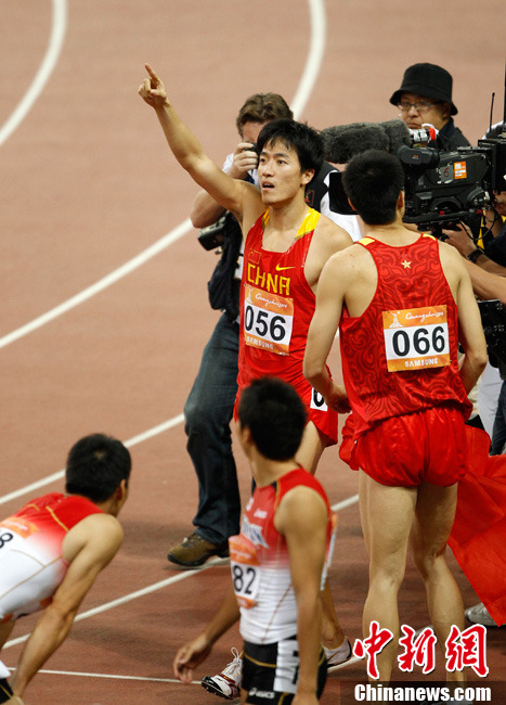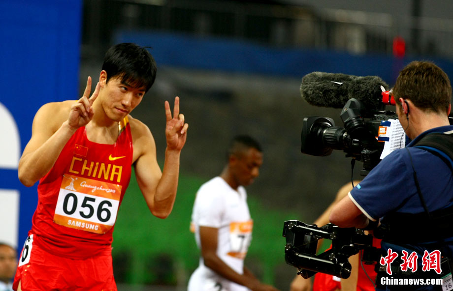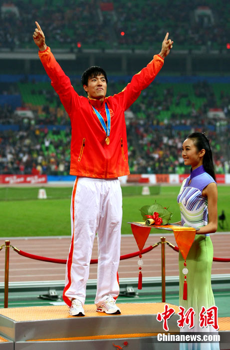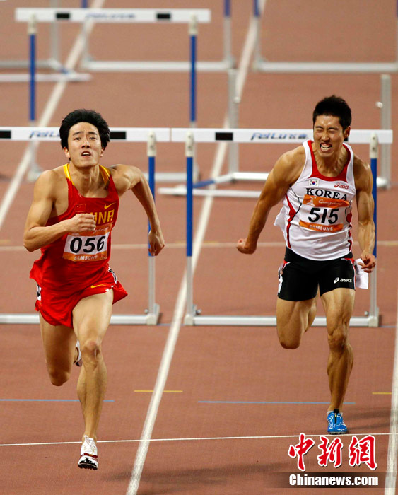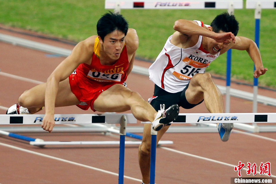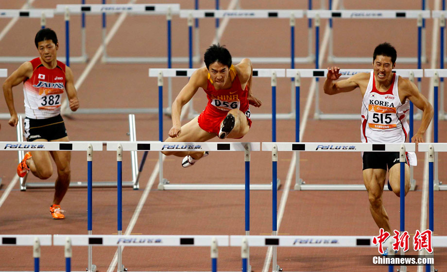 11月24日,廣州亞運(yùn)會(huì)男子110米欄決賽,劉翔以13秒09的成績(jī)奪得金牌,這一成績(jī)打破了亞運(yùn)會(huì)紀(jì)錄。劉翔以一場(chǎng)酣暢淋漓的勝利宣告了自己的回歸。中新社記者 王東明 攝