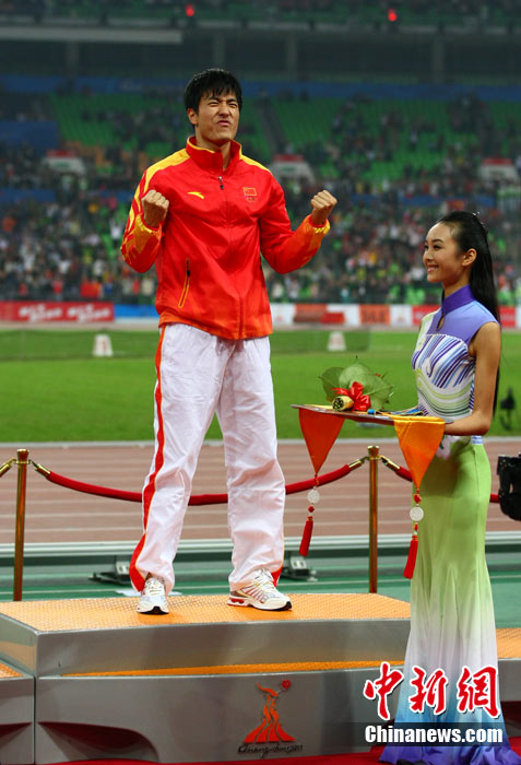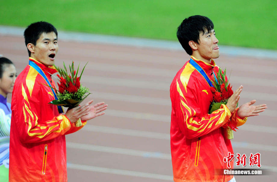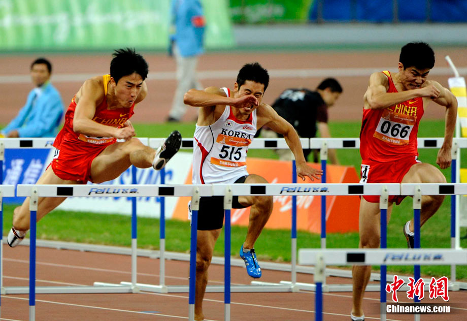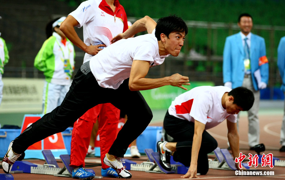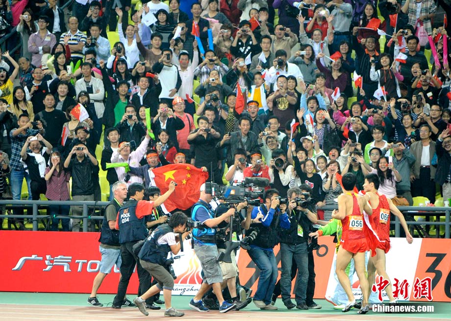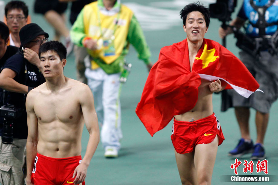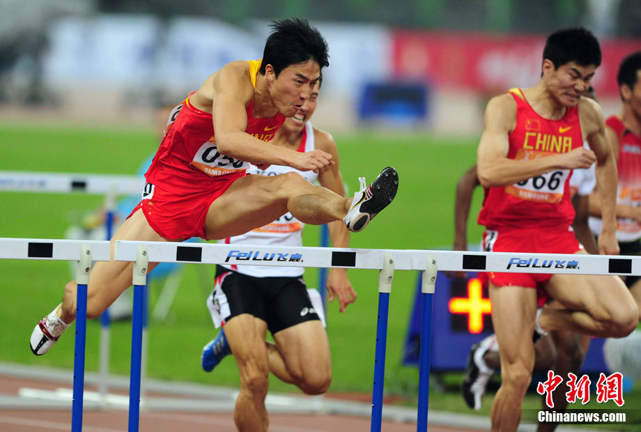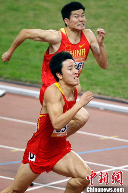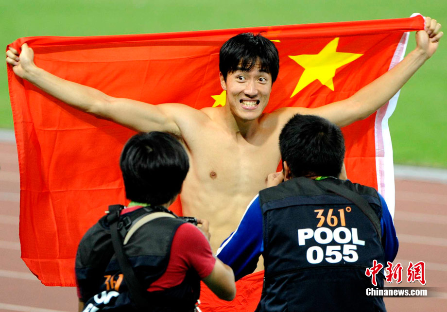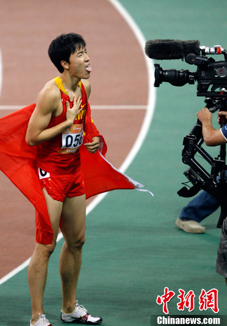 11月24日,廣州亞運(yùn)會(huì)男子110米欄決賽,劉翔以13秒09的成績(jī)奪得金牌,這一成績(jī)打破了亞運(yùn)會(huì)紀(jì)錄。劉翔以一場(chǎng)酣暢淋漓的勝利宣告了自己的回歸。中新社記者 王東明 攝