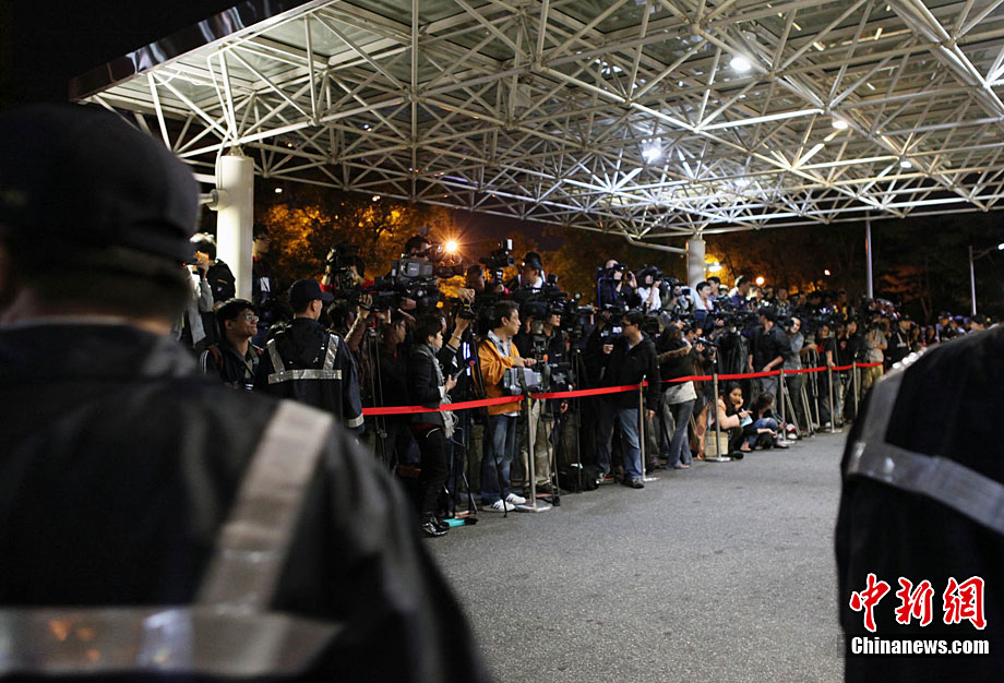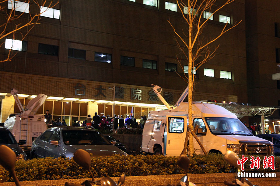 中國國民黨榮譽(yù)主席連戰(zhàn)之子連勝文26日晚在新北市永和參加造勢晚會(huì)時(shí),遭到近距離槍擊重傷,經(jīng)送往永和耕莘醫(yī)院急救,再轉(zhuǎn)送臺(tái)灣大學(xué)醫(yī)學(xué)院附設(shè)醫(yī)院急救。圖為在臺(tái)大醫(yī)院外,幾十家媒體記者聚集在此等候消息。中新社記者 關(guān)向東 攝