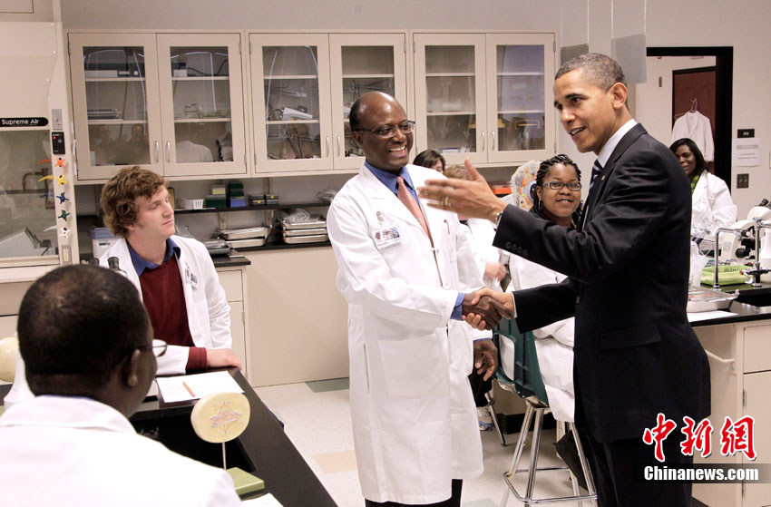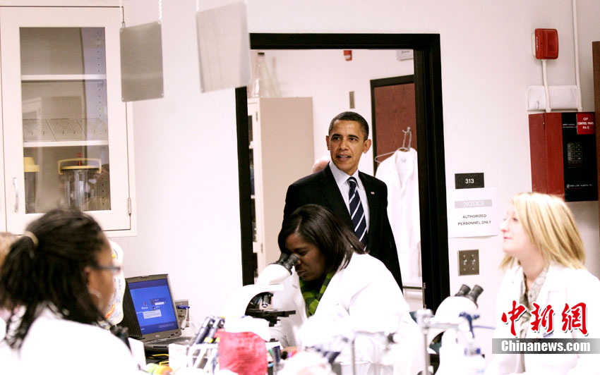 當(dāng)?shù)貢r(shí)間12月6日,美國(guó)總統(tǒng)奧巴馬訪(fǎng)問(wèn)北卡羅萊納州,并參觀(guān)了該州的一處社區(qū)大學(xué)實(shí)驗(yàn)室。