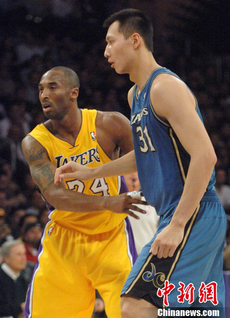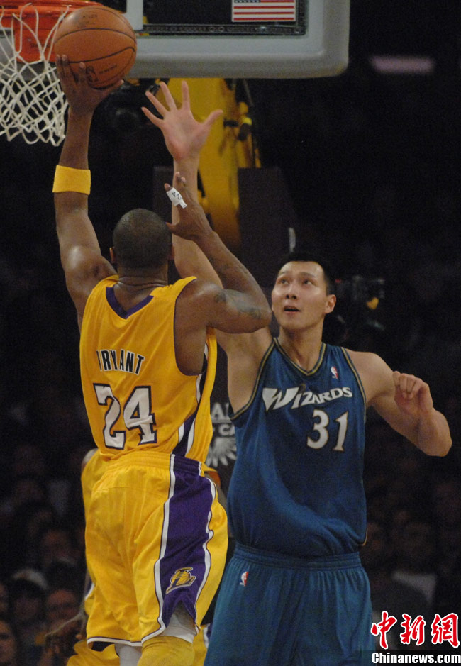 當(dāng)?shù)貢r間12月7日晚,華盛頓奇才隊在洛杉磯客場挑戰(zhàn)洛杉磯湖人隊,由于奇才主力前鋒安德雷賽前左臀撞傷,中國球員易建聯(lián)先發(fā)上陣,這是易建聯(lián)本賽季首次先發(fā)。上半場奇才以56比69落后,易建聯(lián)拿下5分。中新社發(fā) 張煒 攝