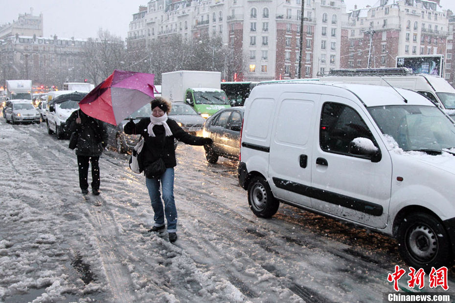 當?shù)貢r間12月8日,法國首都巴黎及其周邊地區(qū)再度出現(xiàn)強降雪,根據(jù)法國氣象部門公布的數(shù)據(jù),巴黎局部地區(qū)降雪量達到11厘米,為歷史較高水平。此次降雪造成巴黎及周邊地區(qū)交通擁堵,高速公路的車龍延綿四百二十公里,市中心巴士一度停駛,旅游景點巴黎鐵塔也要關閉,TGV高速列車也要限速行駛,戴高樂及奧利兩大機場關閉,數(shù)百班機取消。