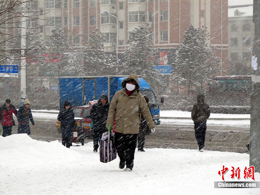 12月10日上午,長春街頭市民冒雪出行。從9日下午開始,吉林省遭遇大到暴雪,截至10日上午8時(shí),長春市農(nóng)安縣降雪量最大,達(dá)到9.1毫米,雪深達(dá)12厘米。據(jù)悉,大雪致使長春龍嘉國際機(jī)場兩度關(guān)閉,共有9個進(jìn)出港航班取消,千余名旅客滯留機(jī)場。中央氣象臺12月10日6時(shí)繼續(xù)發(fā)布暴雪藍(lán)色預(yù)警:12月10日08時(shí)至11日08時(shí),遼寧東北部、吉林中東部、黑龍江大部等地有大雪(5~9毫米),其中,遼寧東北部的局地、吉林中東部偏北地區(qū)、黑龍江中東部偏南地區(qū)等地有暴雪(10~15毫米)。中新社發(fā) 李彥國 攝