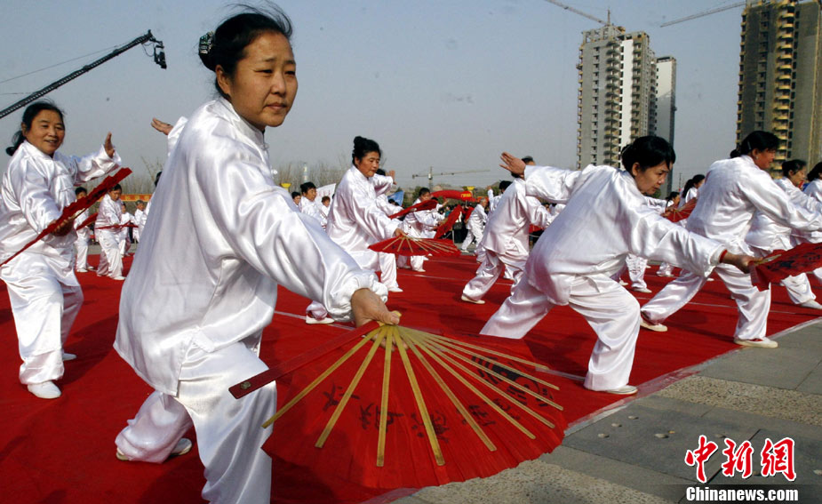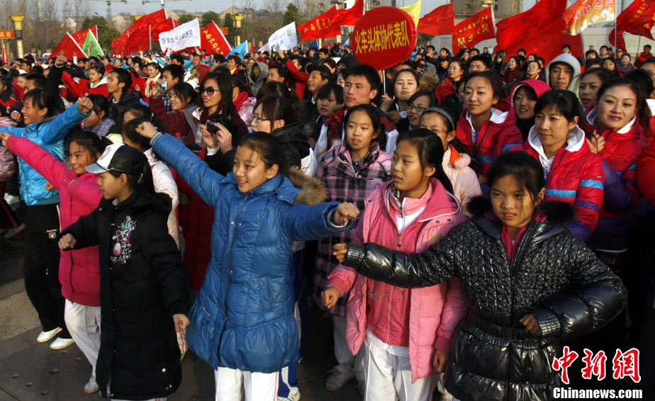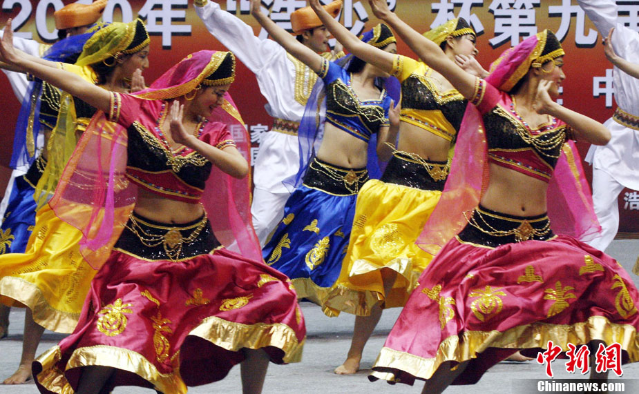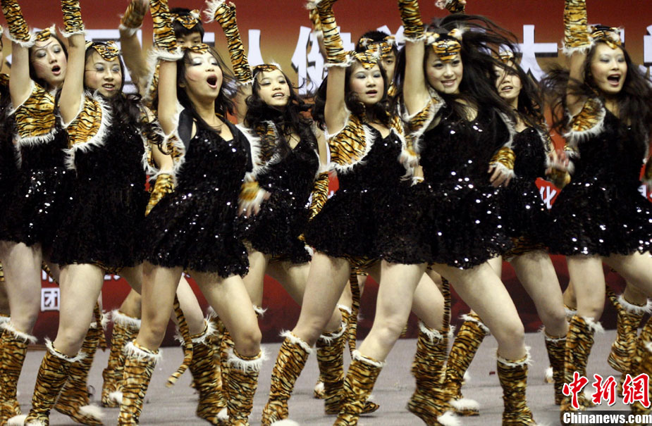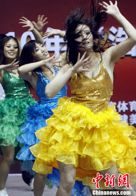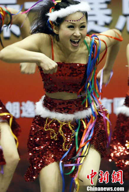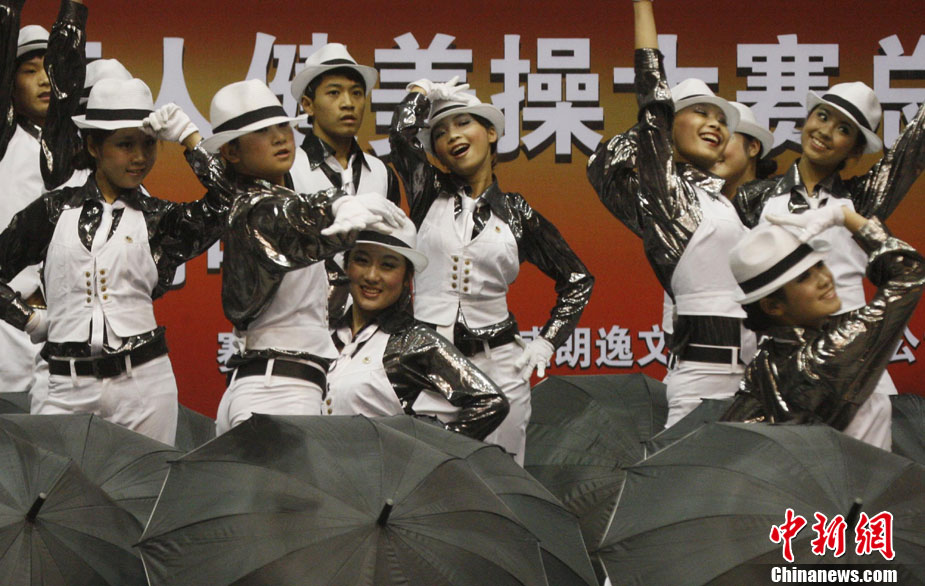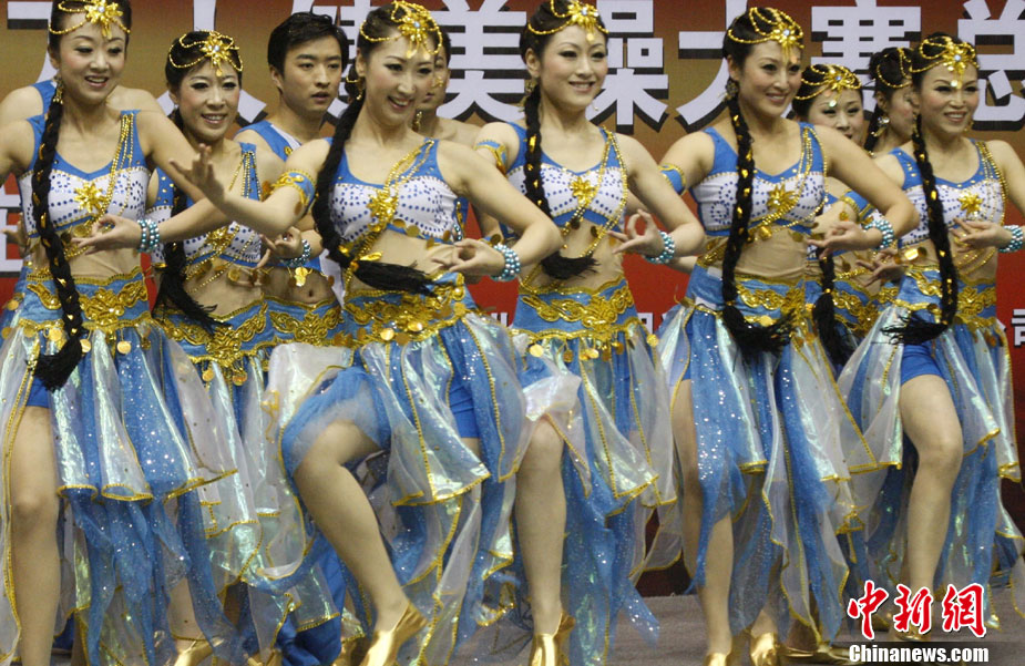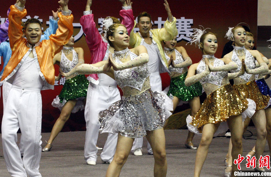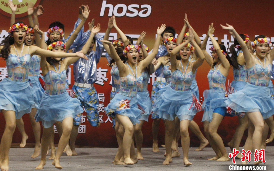 12月10日晚,正在山東棗莊市體育館舉行的2010年第9屆“浩沙杯”中國內(nèi)地萬人健美操大賽總決賽上,來自中國內(nèi)地20個(gè)賽區(qū)的優(yōu)秀團(tuán)隊(duì)以風(fēng)格不同、絢麗多姿的“排舞”形式比賽。全民健身排舞是集舞蹈、運(yùn)動(dòng)和文化于一體的舞蹈形式,因其健身性、娛樂性、觀賞性和群眾性的特點(diǎn)而深受人們喜愛。圖為參賽的各“排舞”隊(duì)在賽場(chǎng)上展示風(fēng)采。