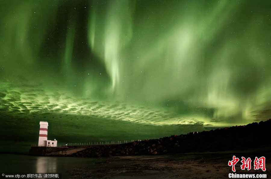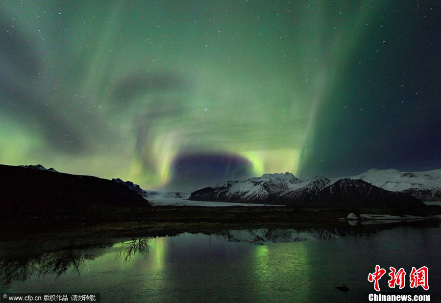2010年11月,冰島攝影師Orvar Thorgiersson拍攝的美麗北極光。北極光一般遵循持續(xù)11年的“太陽活動周期”,在這個周期內(nèi),北極光出現(xiàn)頻率先是達(dá)到一個峰值,接著逐漸減少,直至最低谷。這是一個不斷循環(huán)往復(fù)的過程。有研究稱,北極光至2012年將達(dá)到一個周期的峰值,Orvar Thorgiersson用鏡頭記錄下2007年至今的北極光變化過程。barcroftmedia 圖片來源:CFP視覺中國
