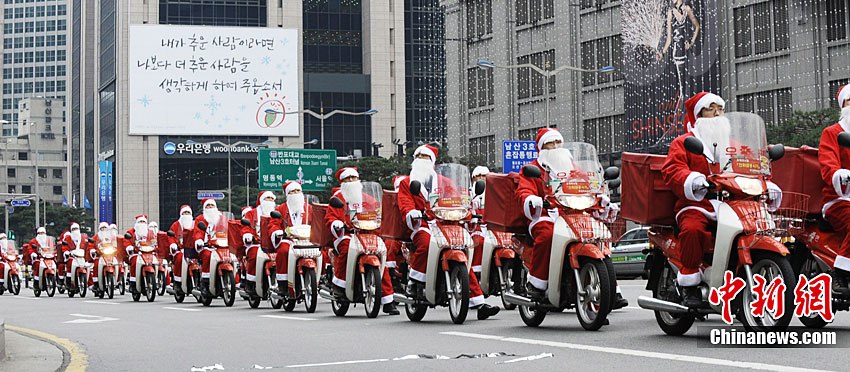當(dāng)?shù)貢r(shí)間12月13日,韓國(guó)首爾中央郵局舉行“圣誕老人 愛(ài)的信使”儀式。郵遞員變身“圣誕老人”送郵件,迎接圣誕節(jié)的到來(lái)。