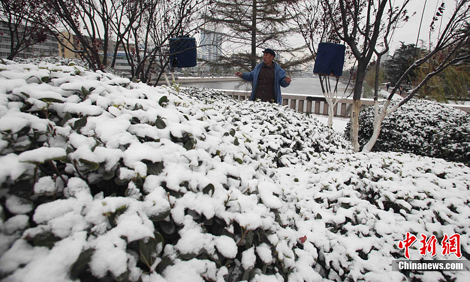 12月14日清晨,市民在落雪的車(chē)上寫(xiě)下“下雪了”。當(dāng)日,江蘇淮安迎來(lái)了入冬首場(chǎng)雪。昨日上午,淮安上空開(kāi)始淅淅瀝瀝的下起小雨并伴有大風(fēng),到今日凌晨時(shí)分,“羞羞答答”的雪花伴著小雨光臨淮安。陳忠軍 攝 圖片來(lái)源:CNSPHOTO