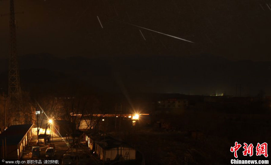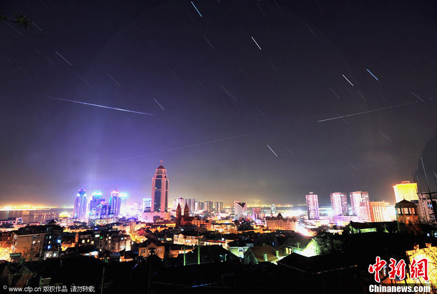 臨近歲末,雙子座流星雨如期而至。12月14日19時(shí),雙子座流星雨達(dá)到極大,每小時(shí)流星量達(dá)120顆。圖為山東青島棧橋景區(qū)上空明亮的流星從雙子星座輻射而出,劃過城市上空。周昆 攝 圖片來源:CFP視覺中國