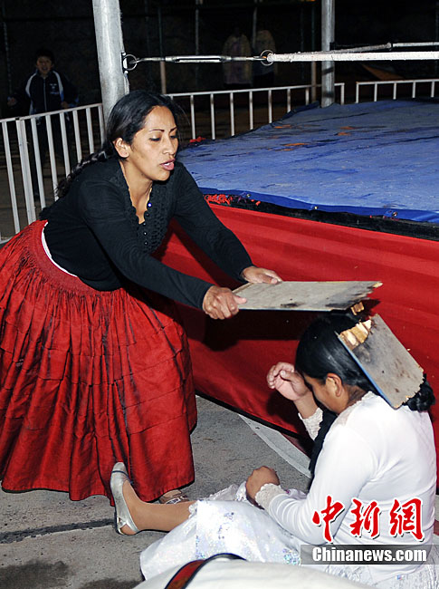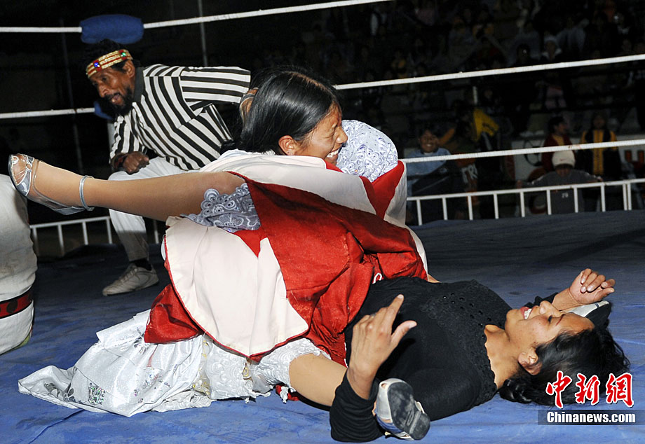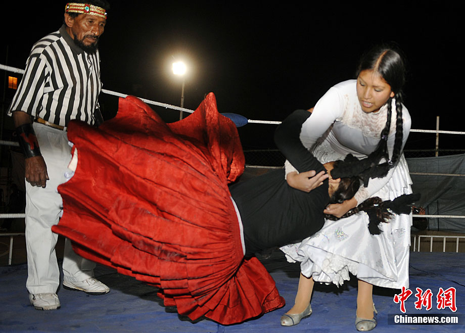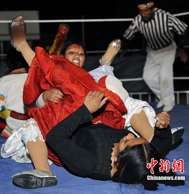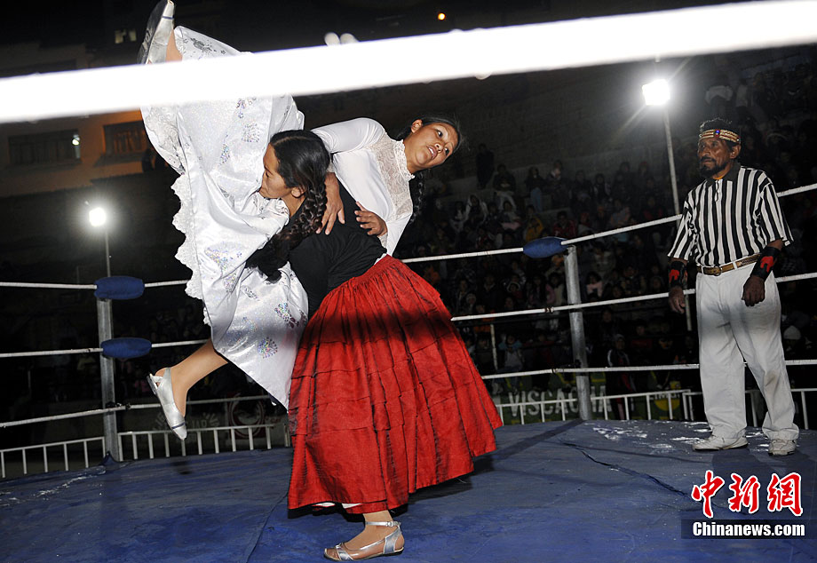 位處南美洲的玻利維亞為了刺激旅游業(yè),每年冬天都會(huì)舉行女子摔角比賽,雖然場地大小與聲光音響效果遠(yuǎn)不及著名的美國女子摔角聯(lián)盟大賽,不過緊張刺激的過程,僅僅一美元的門票價(jià)格,仍然吸引了不少游客到場觀戰(zhàn)。
