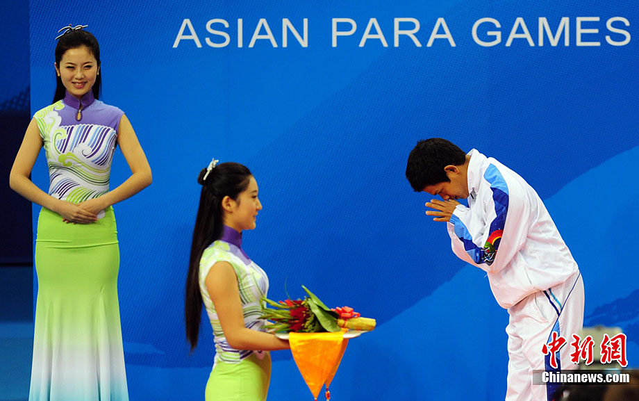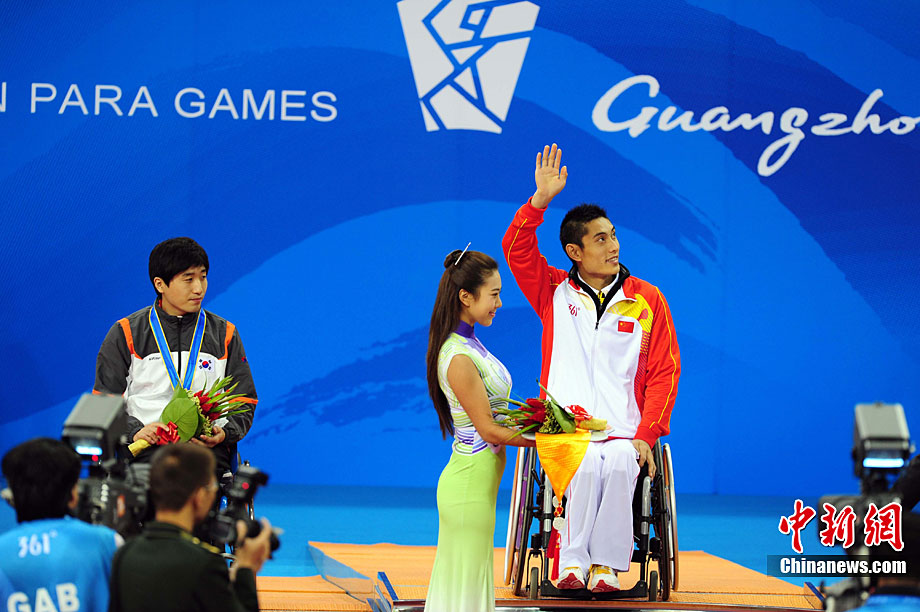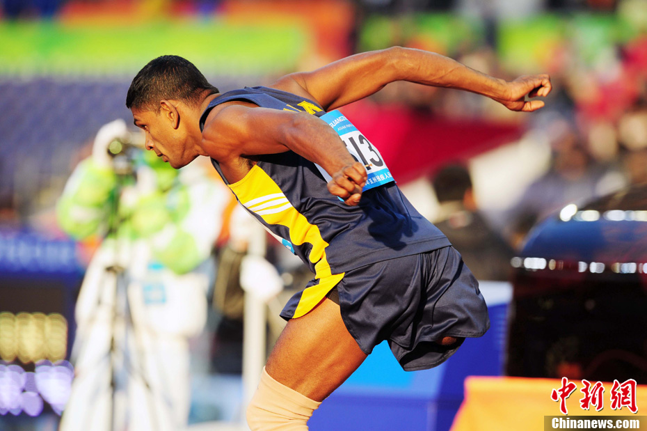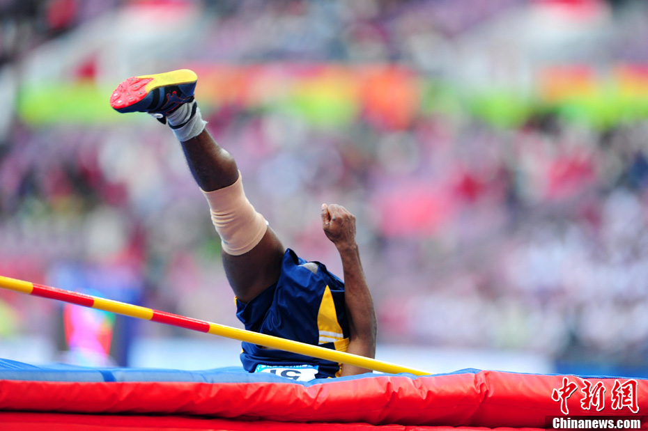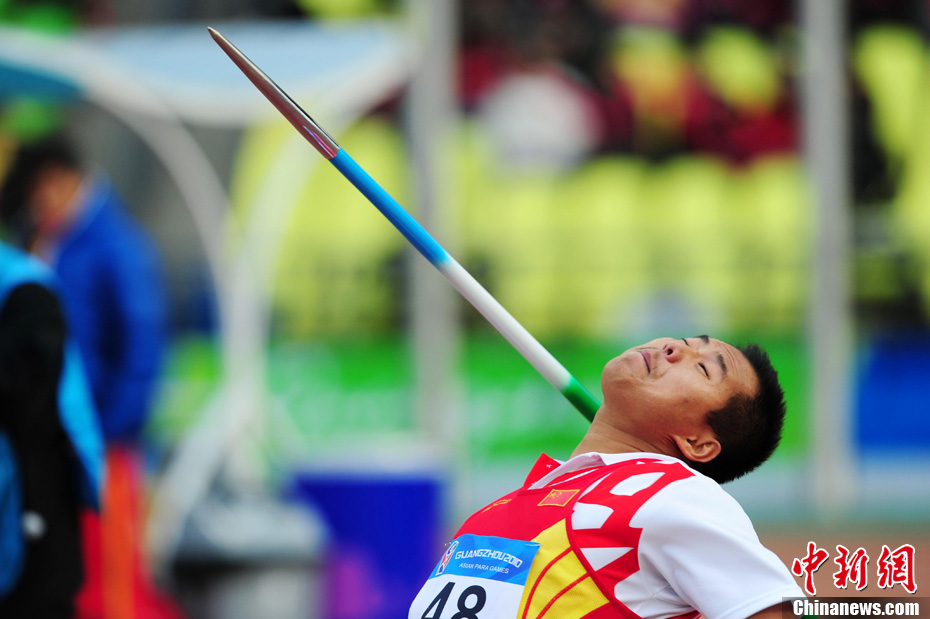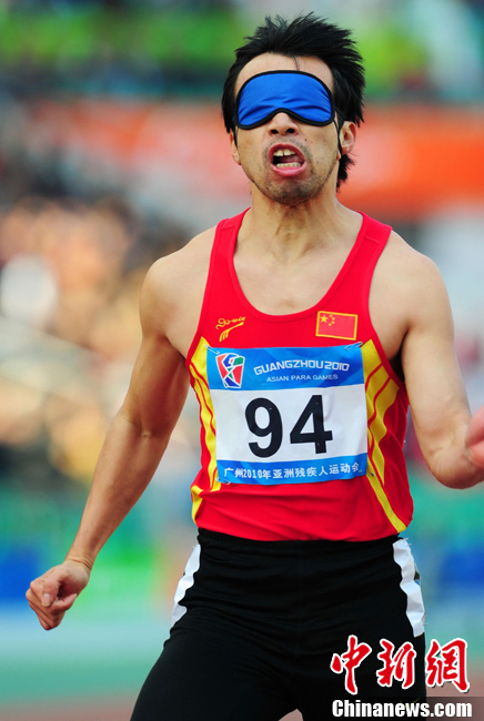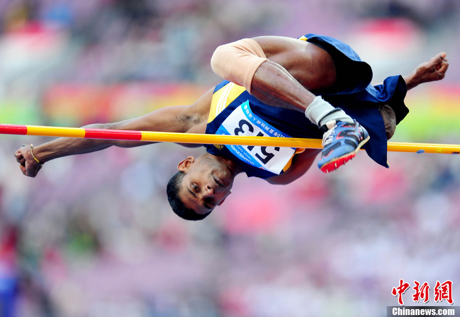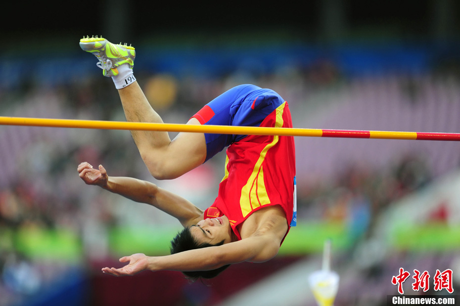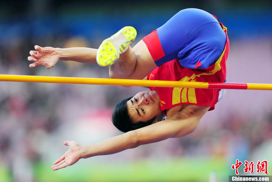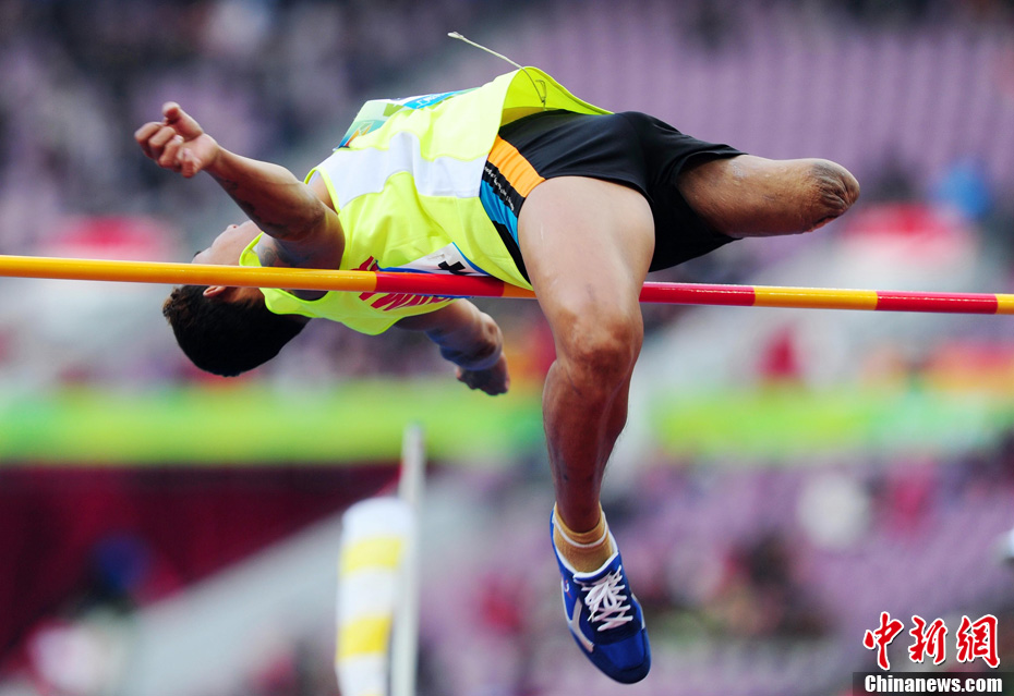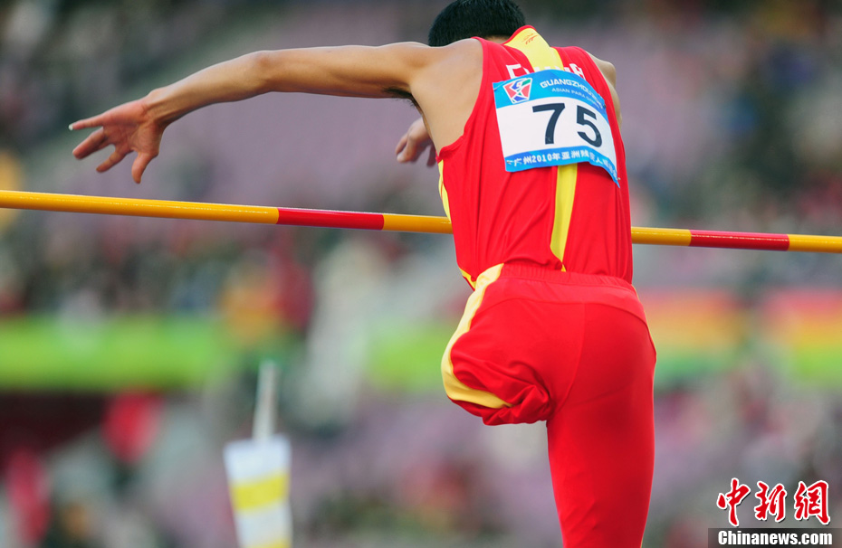 12月16日,廣州2010年亞殘運(yùn)會(huì)田徑賽進(jìn)入第3天,廣州遭遇寒流來(lái)襲氣溫降到最低2度,最高氣溫僅7度,亞洲選手在寒冷的氣候條件下參賽。圖為中國(guó)跳高選手李小文在比賽中。中新社記者 陳文 攝