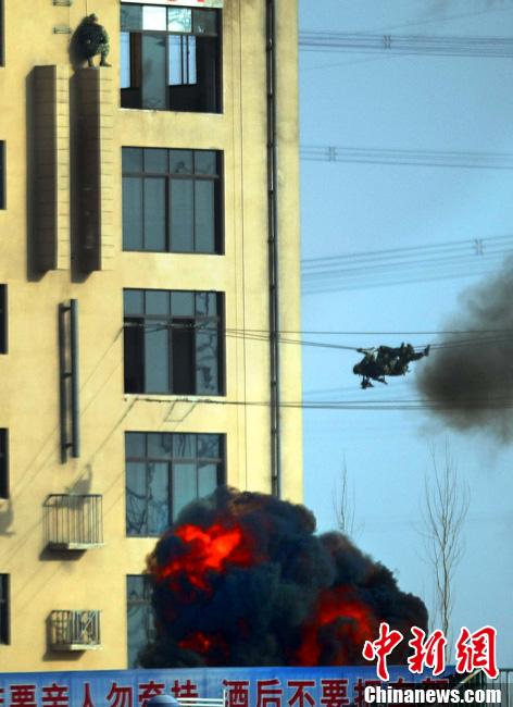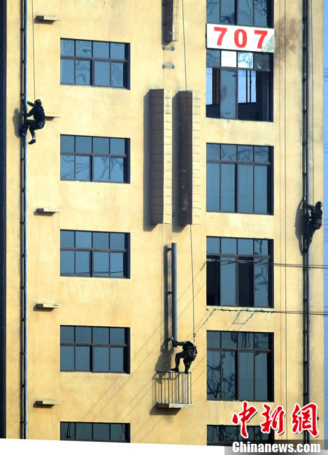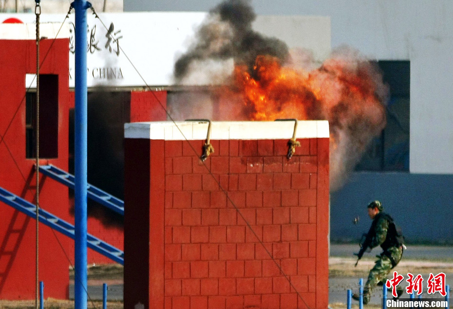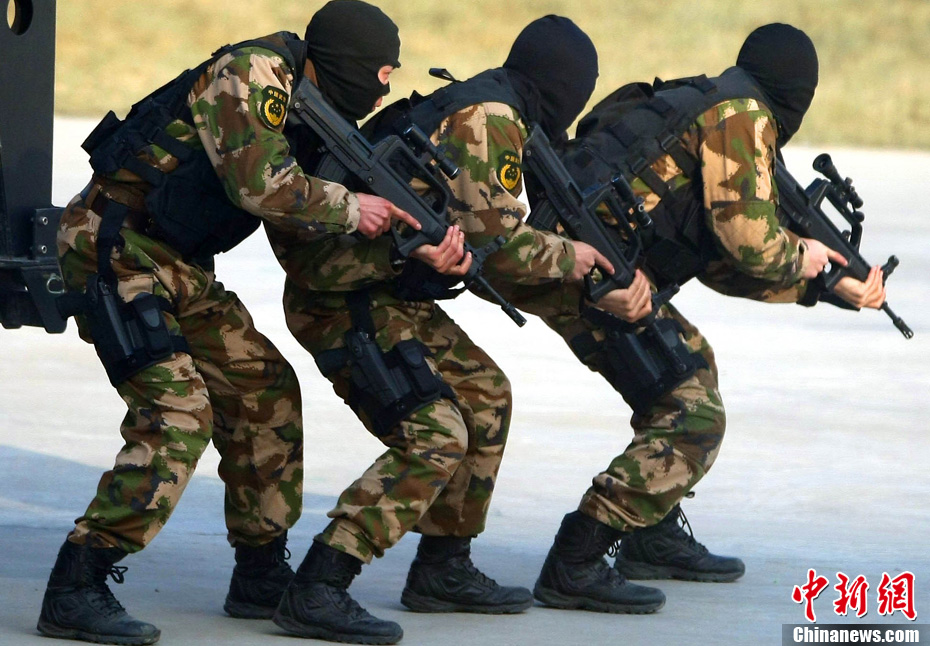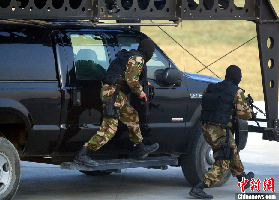 12月18日,中國武裝警察部隊(duì)武警特警學(xué)院特戰(zhàn)隊(duì)員在北京進(jìn)行處置突發(fā)事件訓(xùn)練。該所院校以訓(xùn)練防暴和反劫機(jī)為主要科目,培養(yǎng)出的學(xué)員在國家安全保衛(wèi)工作中發(fā)揮著重要作用。中新社記者 宋吉河 攝