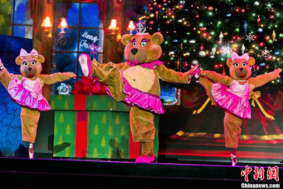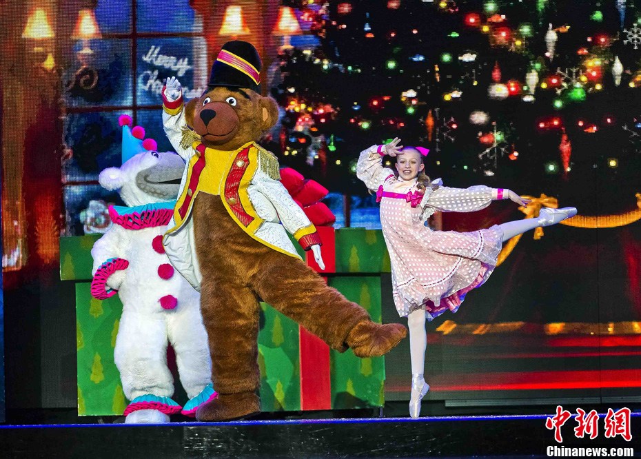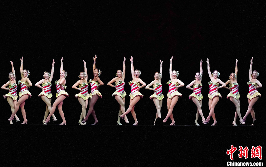 當地時間12月17日晚,美國加州奧克蘭甲骨文體育館內,美國火箭女郎舞蹈團圣誕秀熱鬧登場。78年歷史的火箭女郎舞蹈團1932年在紐約第六大道的無線電城音樂廳首演,以舞蹈演員整齊劃一的踢腿和充滿圣誕氣氛的布景成為美國傳統(tǒng)節(jié)日的經典劇目。演員們在每場演出中單是踢腿到頭頂的動作就達300下。中新社發(fā) 陳鋼 攝