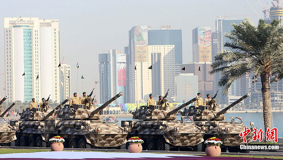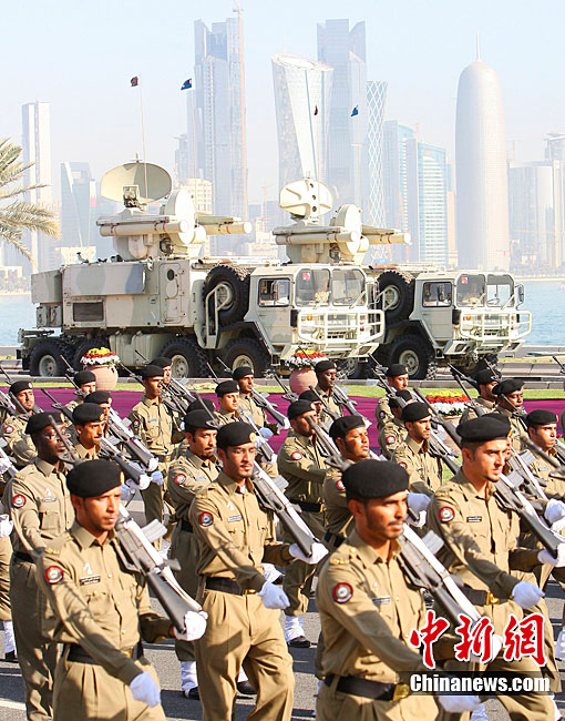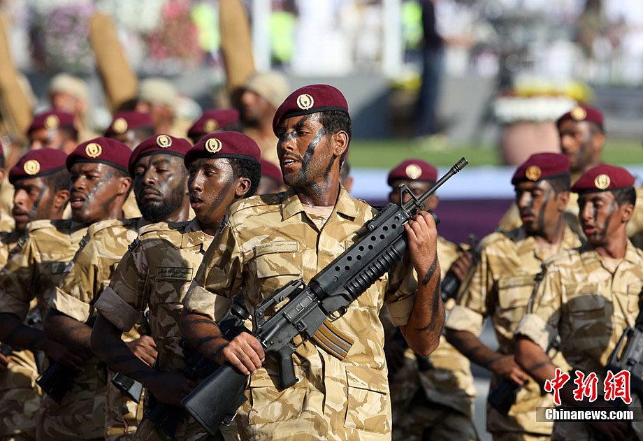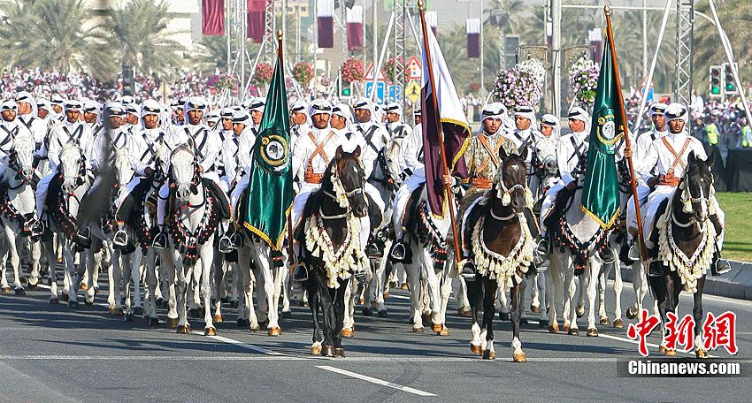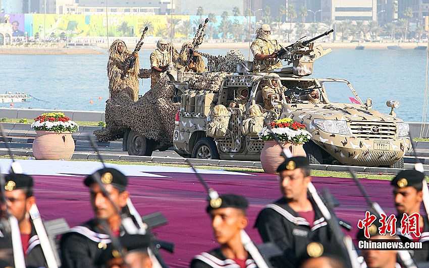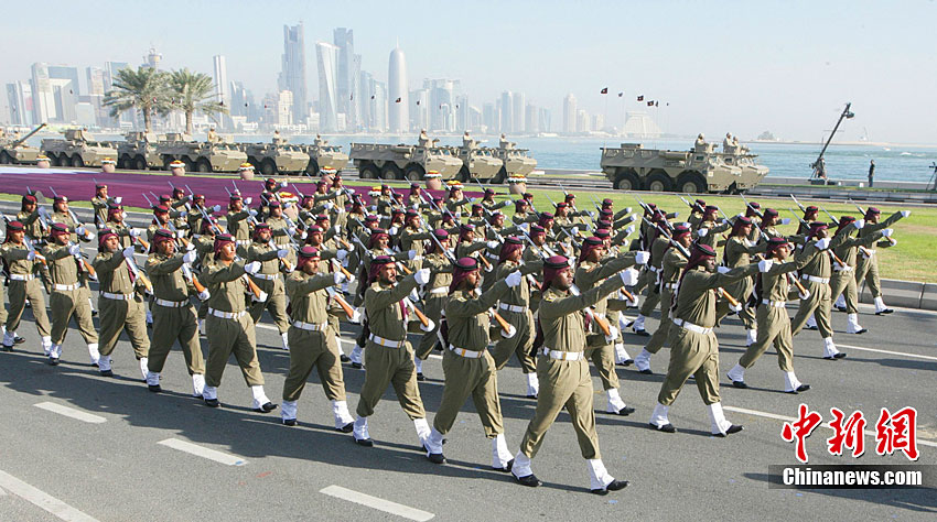 當(dāng)?shù)貢r(shí)間12月18日,卡塔爾首都多哈的海邊大道上舉行了盛大的國慶日閱兵式。