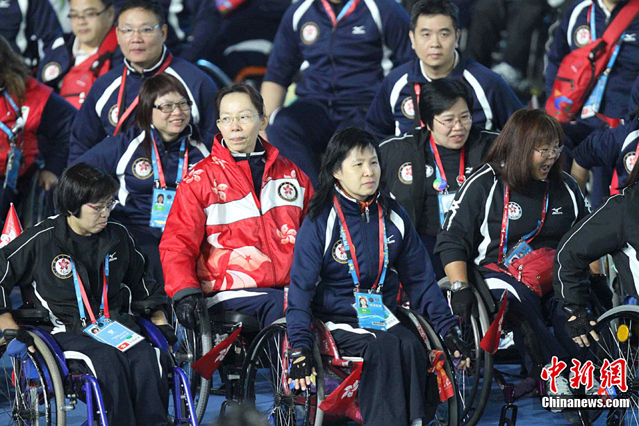 12月19日晚,廣州亞殘運會舉行閉幕式,中國香港隊入場。張美安 攝