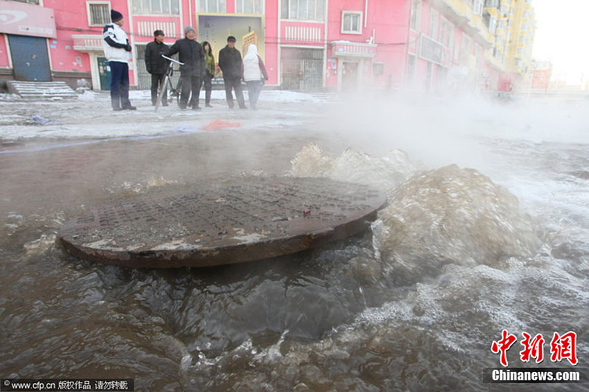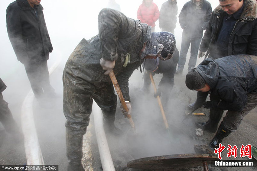 近日,黑龍江省哈爾濱市供熱管線接連爆裂。從12月14日至今,道里區(qū)、道外區(qū)約12萬戶居民供暖中斷。華能公司經(jīng)理趙世雷解釋說,造成這幾次大的停熱事故的主要原因是補償器破裂。18日夜間開始,哈爾濱市降下大雪,最低氣溫接近零下30攝氏度。小剛 攝 圖片來源:CFP視覺中國