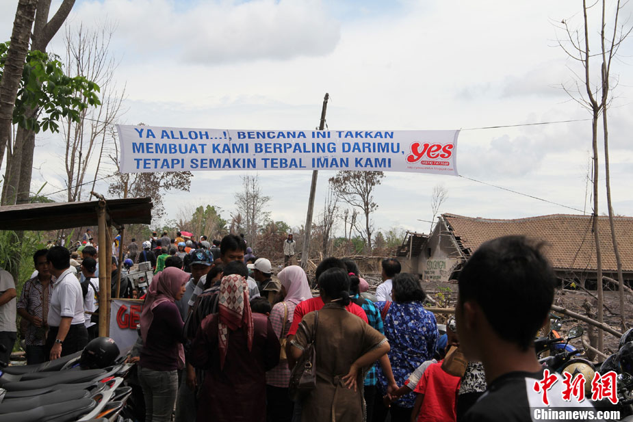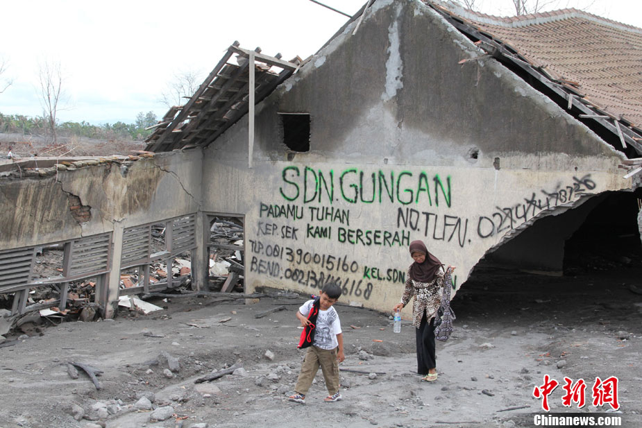 今年10月下旬,位于印尼日惹市的默拉皮火山在沉睡百年后,再次大規(guī)模數(shù)次噴發(fā),并造成300多人罹難、成千上萬人受傷,數(shù)十萬人撤離家園。默拉皮火山11月份停止噴發(fā)后,來自印尼各地的民眾紛紛來此旅游觀光;鹕侥_下一個叫GUNGAND被火山巖漿埋沒的村莊,每天來旅游的人數(shù)逾5000人。圖為當?shù)孛癖娫谂恼樟裟睢V行律绨l(fā) 顧時宏 攝
